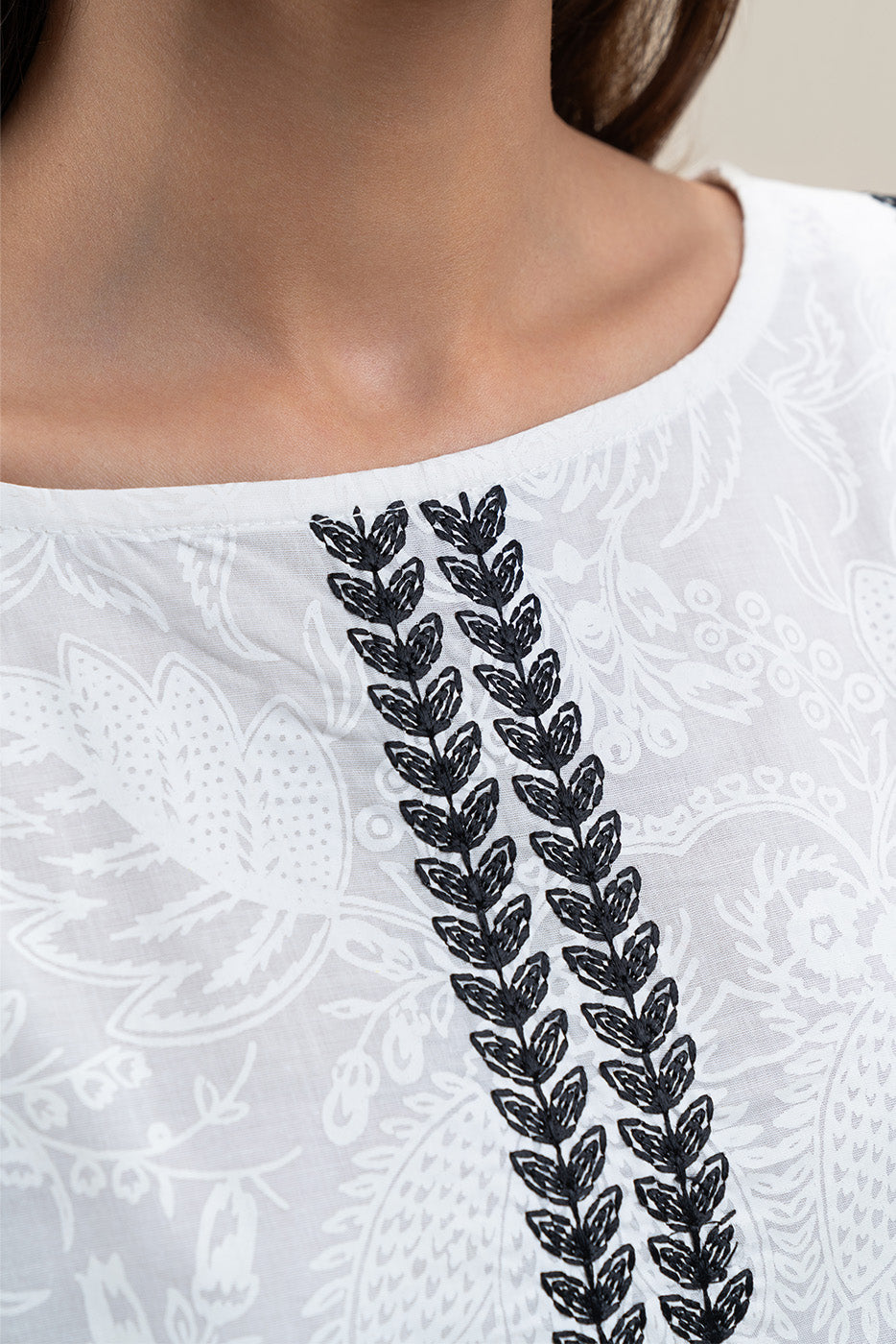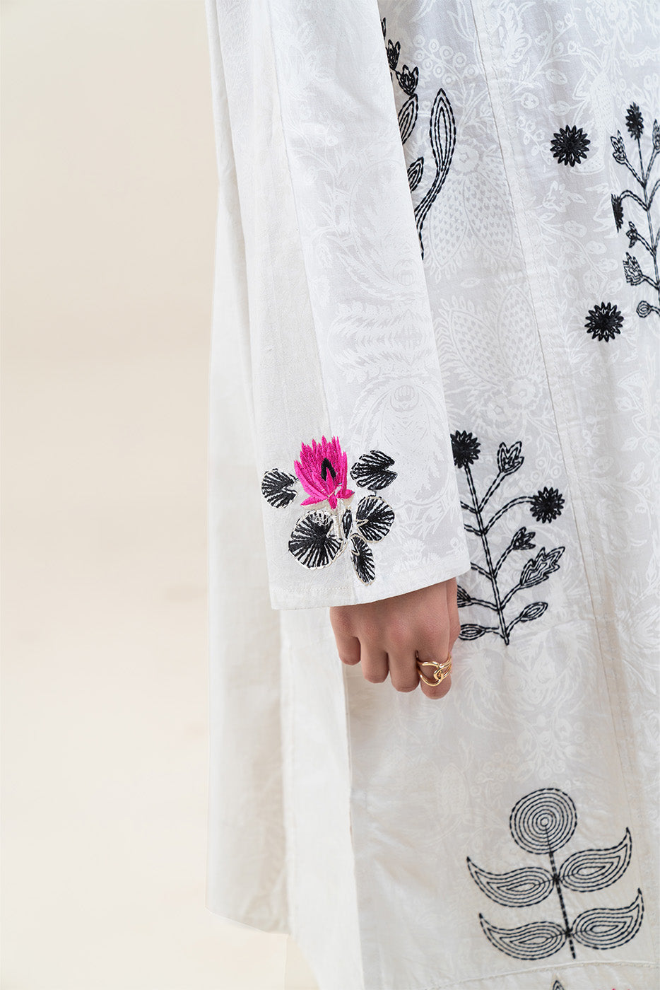- Description: 2Pc.Embroidered Shirt With Boat Neck.Embroidered Sleeves With Screen All Over Front Back And Sleeves.Paired With Screen Printed Straight Pants.