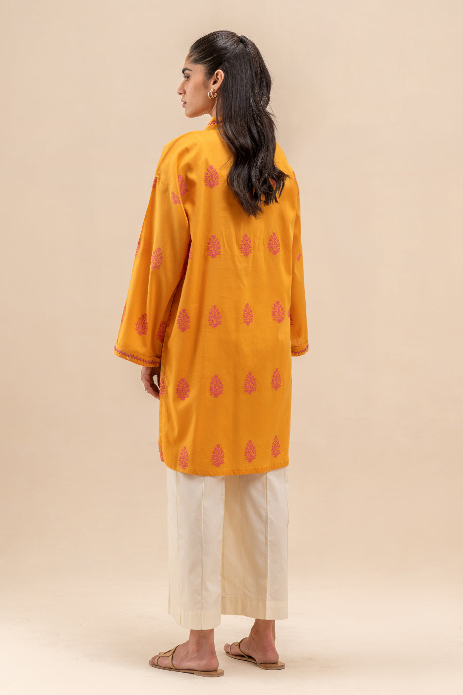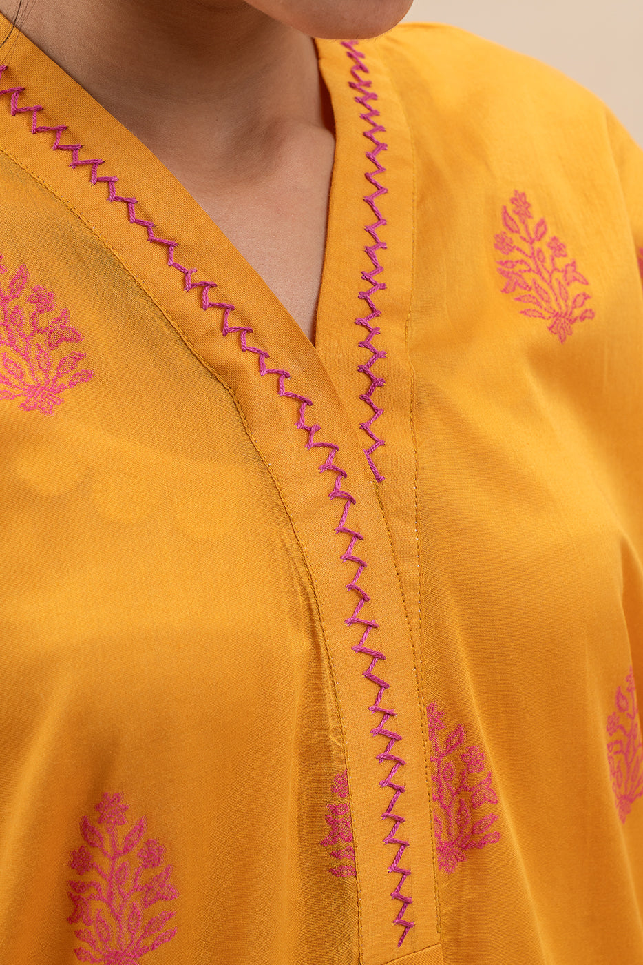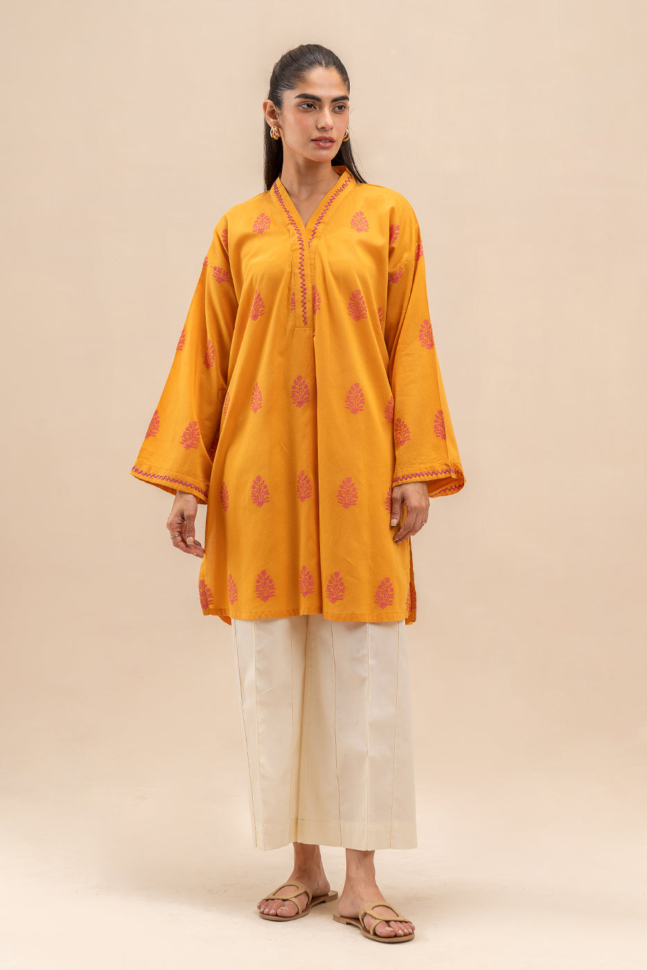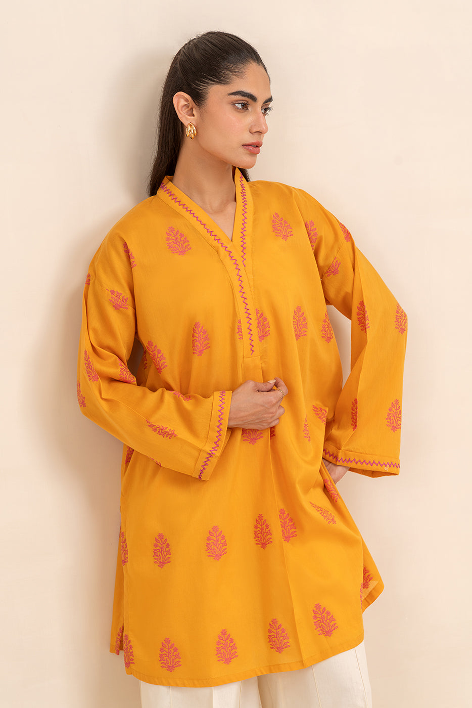- Description: Basic Loose Fit Drop Shoulder Shirt Having Handwork Details On Neckline And Sleeves In Contrast Color.