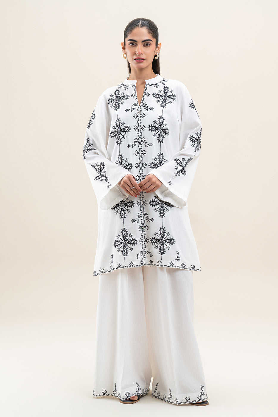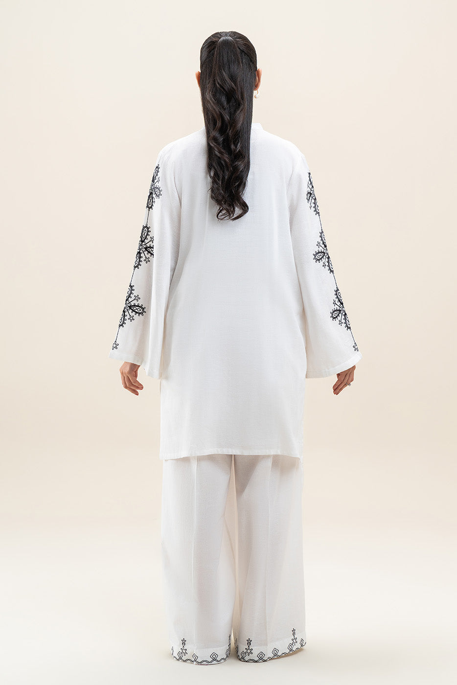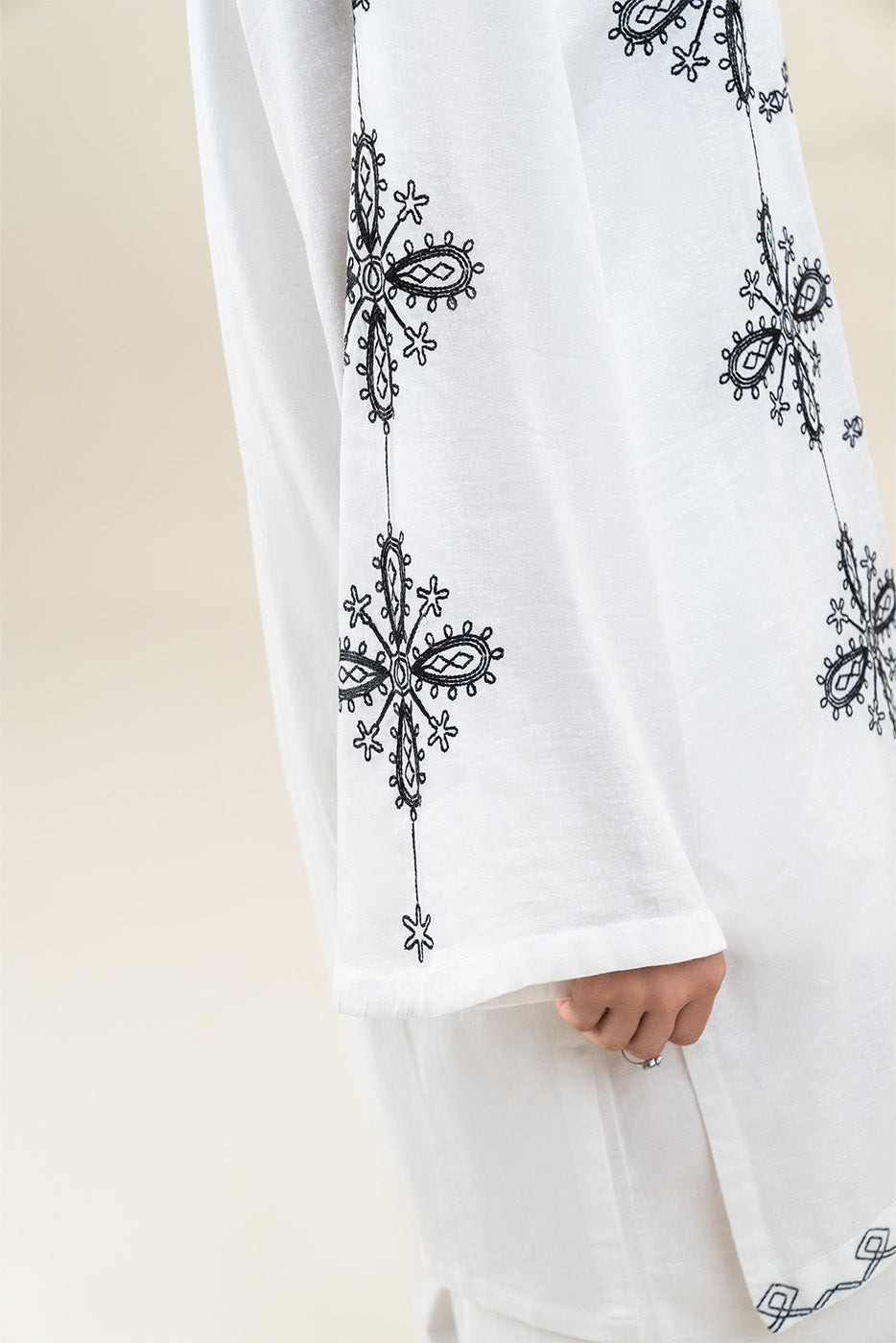 - Description: 2Pc.Embroidered Shirt With Band With Button Details.Embroidered Sleeves.Paired With Embroidered Pants.