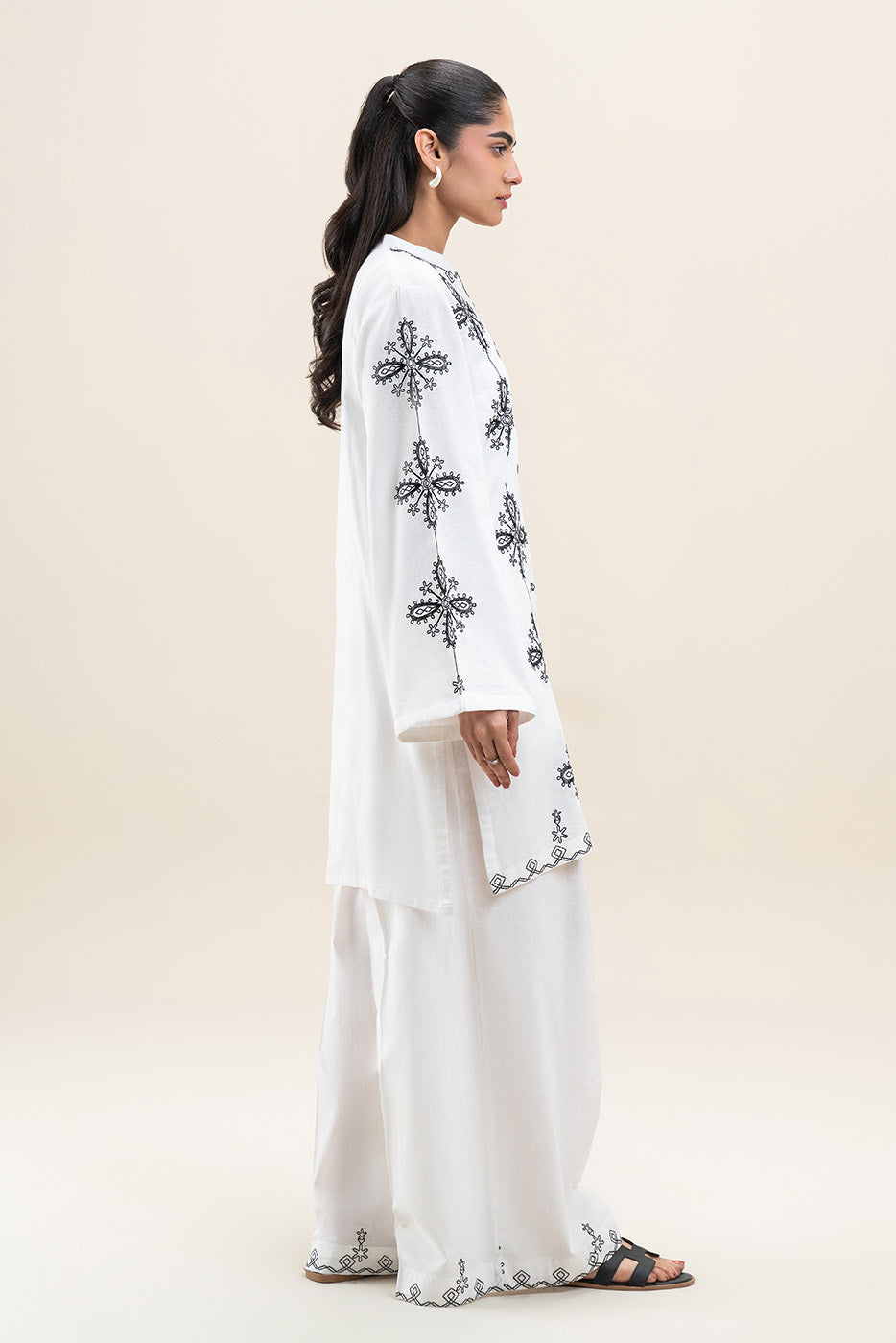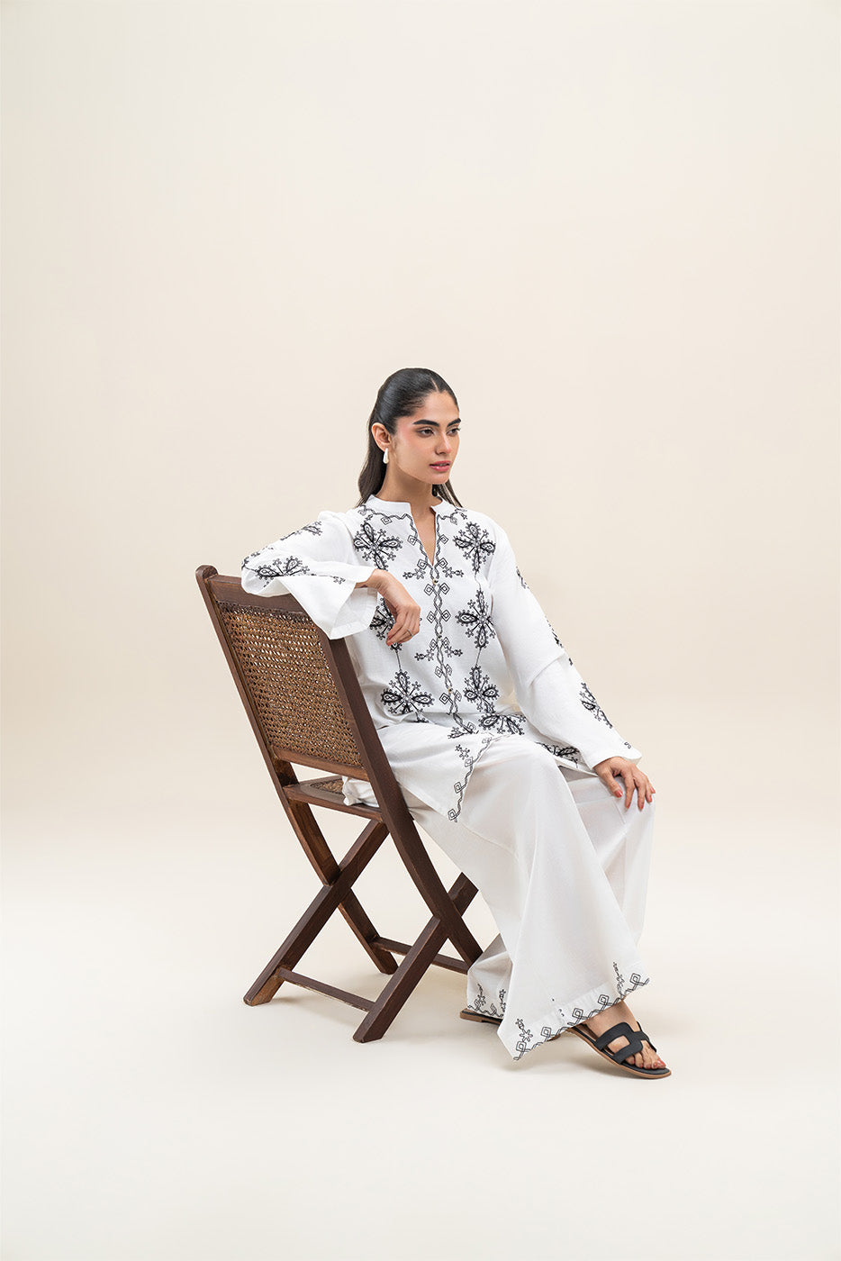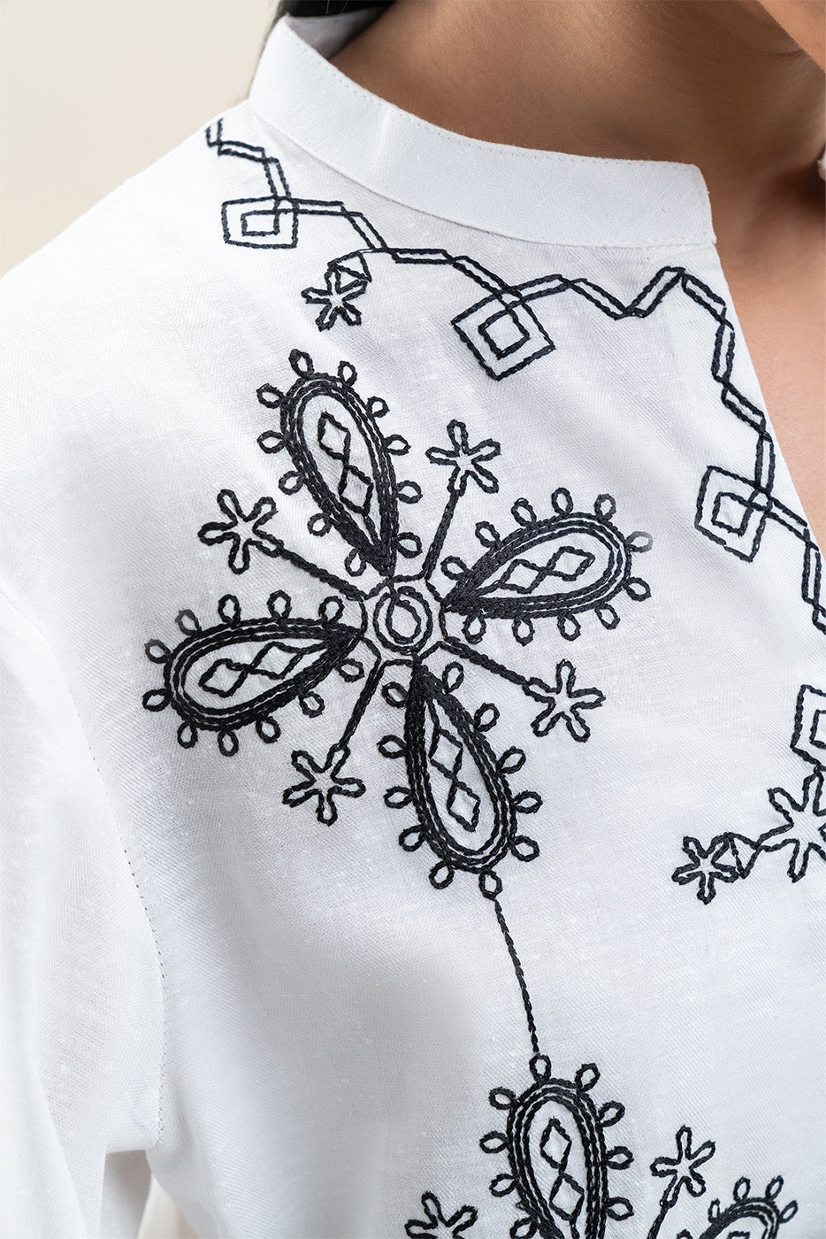 - Description: 2Pc.Embroidered Shirt With Band With Button Details.Embroidered Sleeves.Paired With Embroidered Pants.