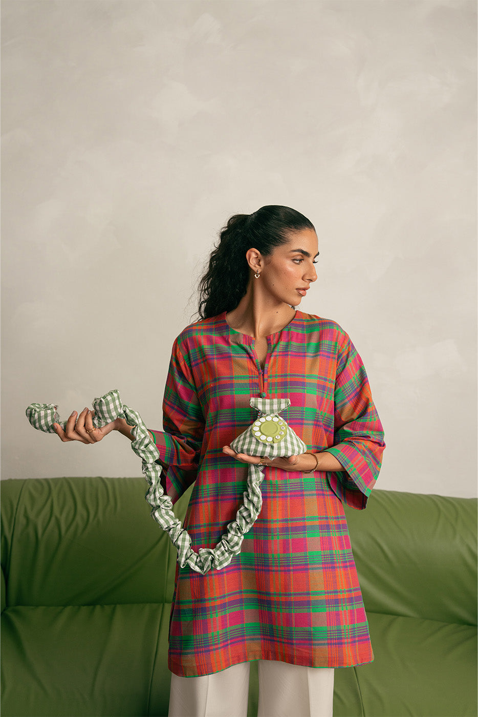 - Description: Round Shirt With Placket With Tassle Detail. Slit On Sleeves. Round Hem.
