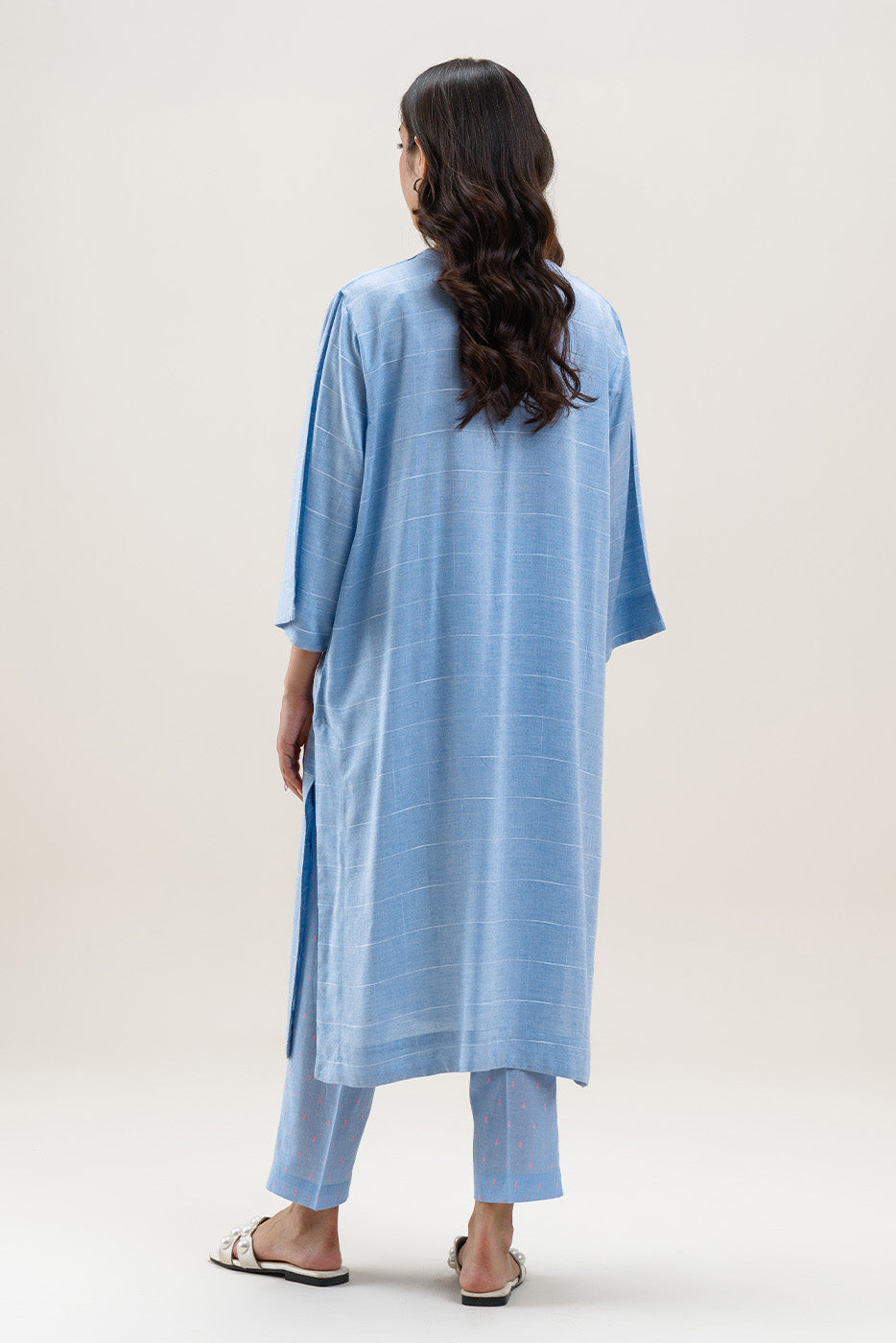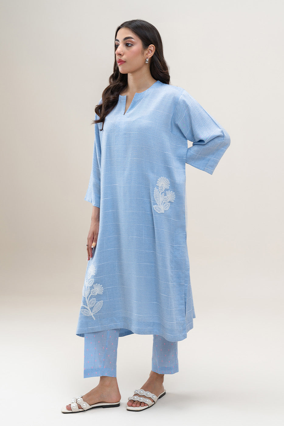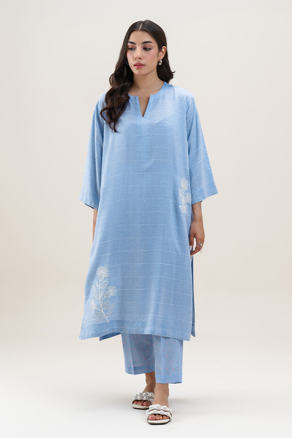 2 PIECE EMBROIDERED CHAMBRAY SUIT (PRET)