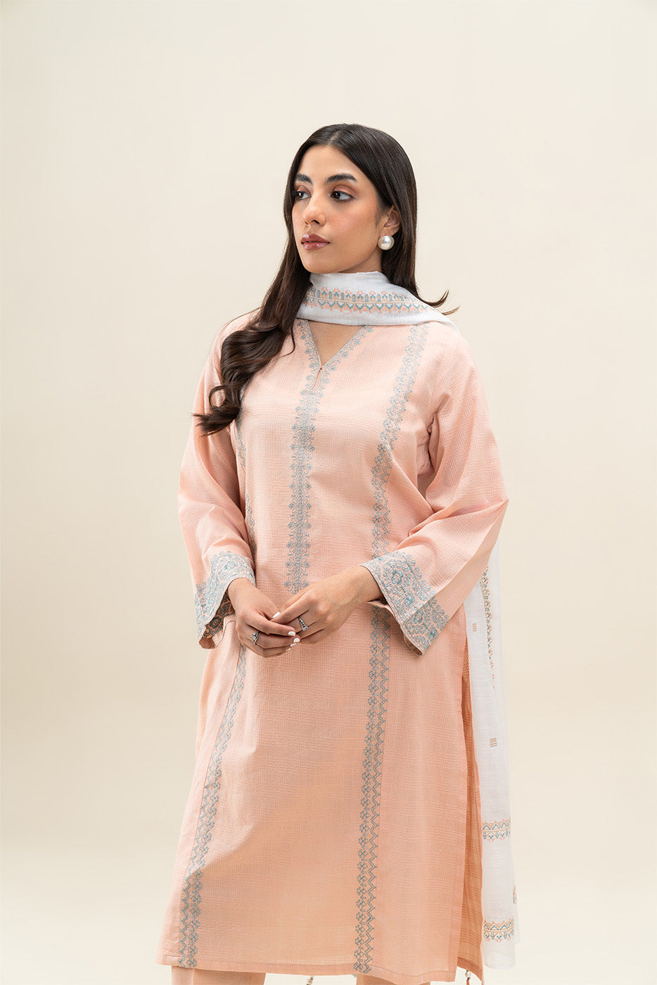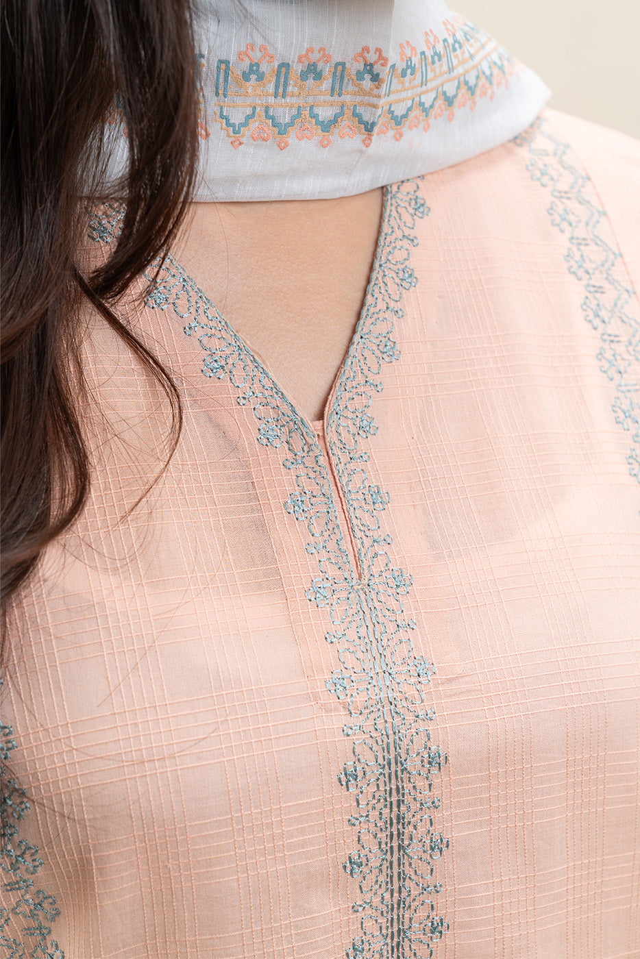 - Description: 3Pc Embroidered Shirt Paired With Printed Dupatta And Straight Trouser.