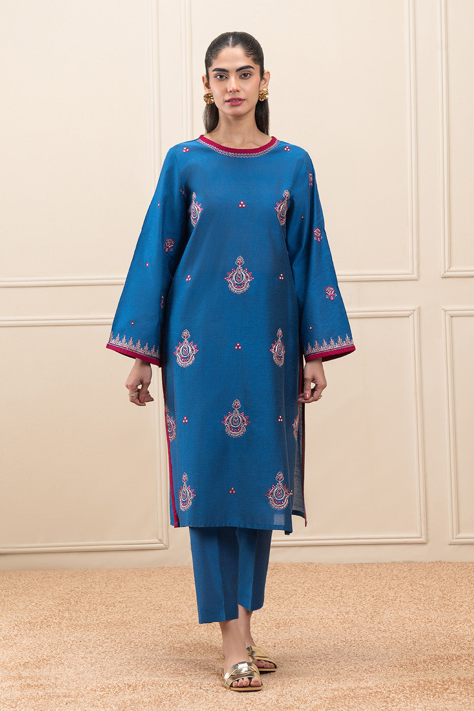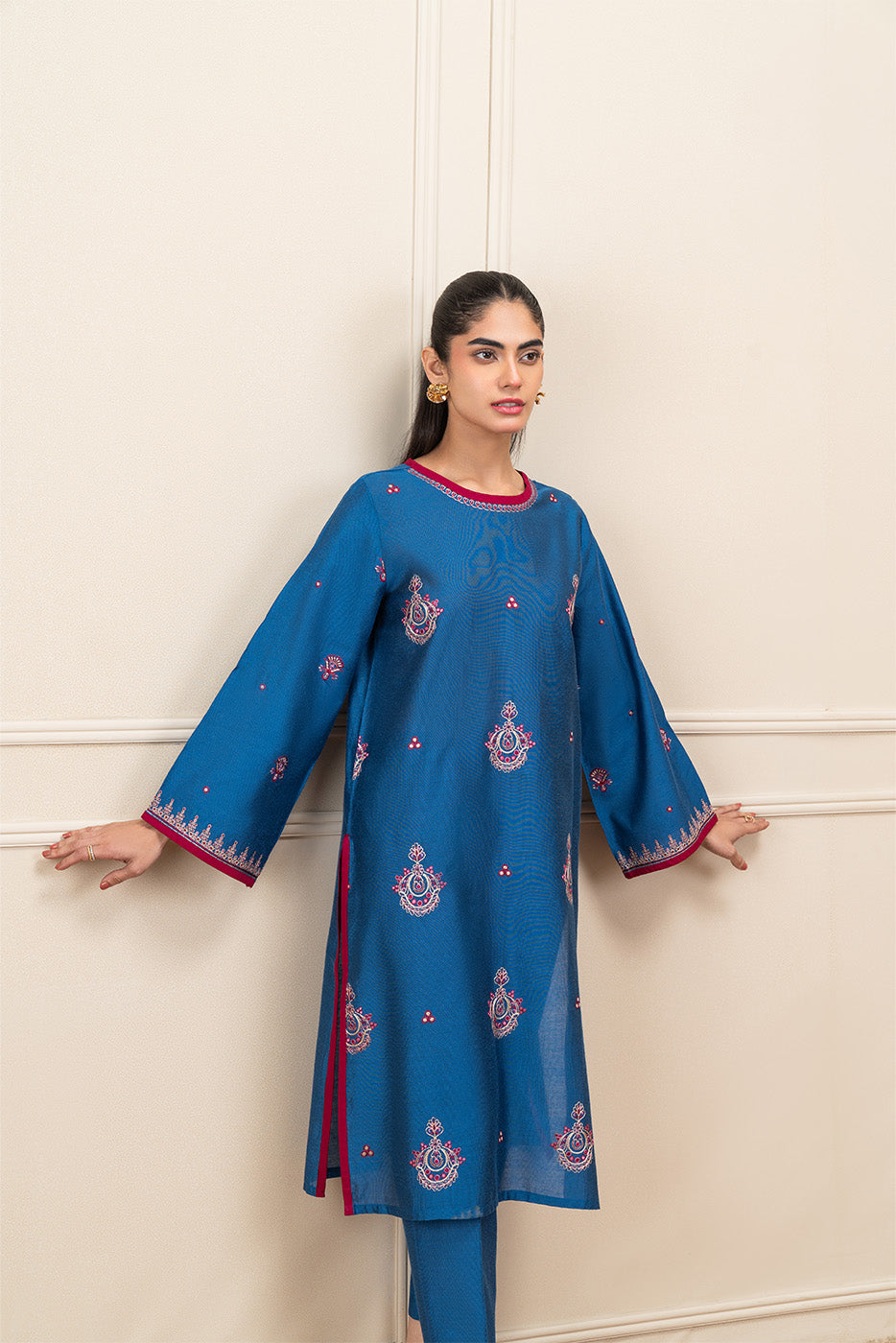 2 PIECE EMBROIDERED TWO TONE SUIT (PRET)