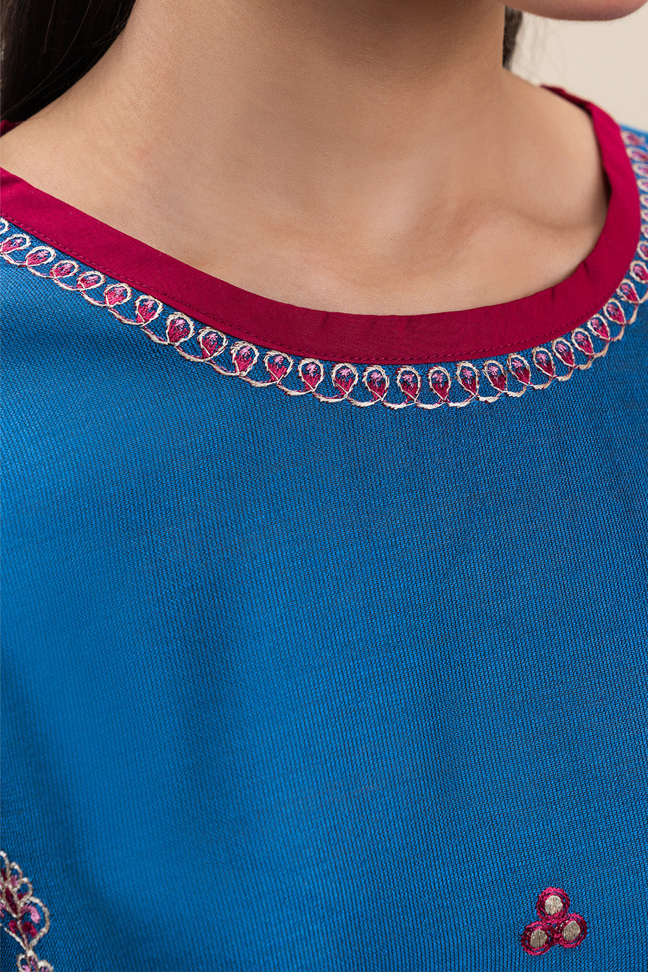 - Description: Embroidered Round Neck Shirt Paired With Straight Trouser.
