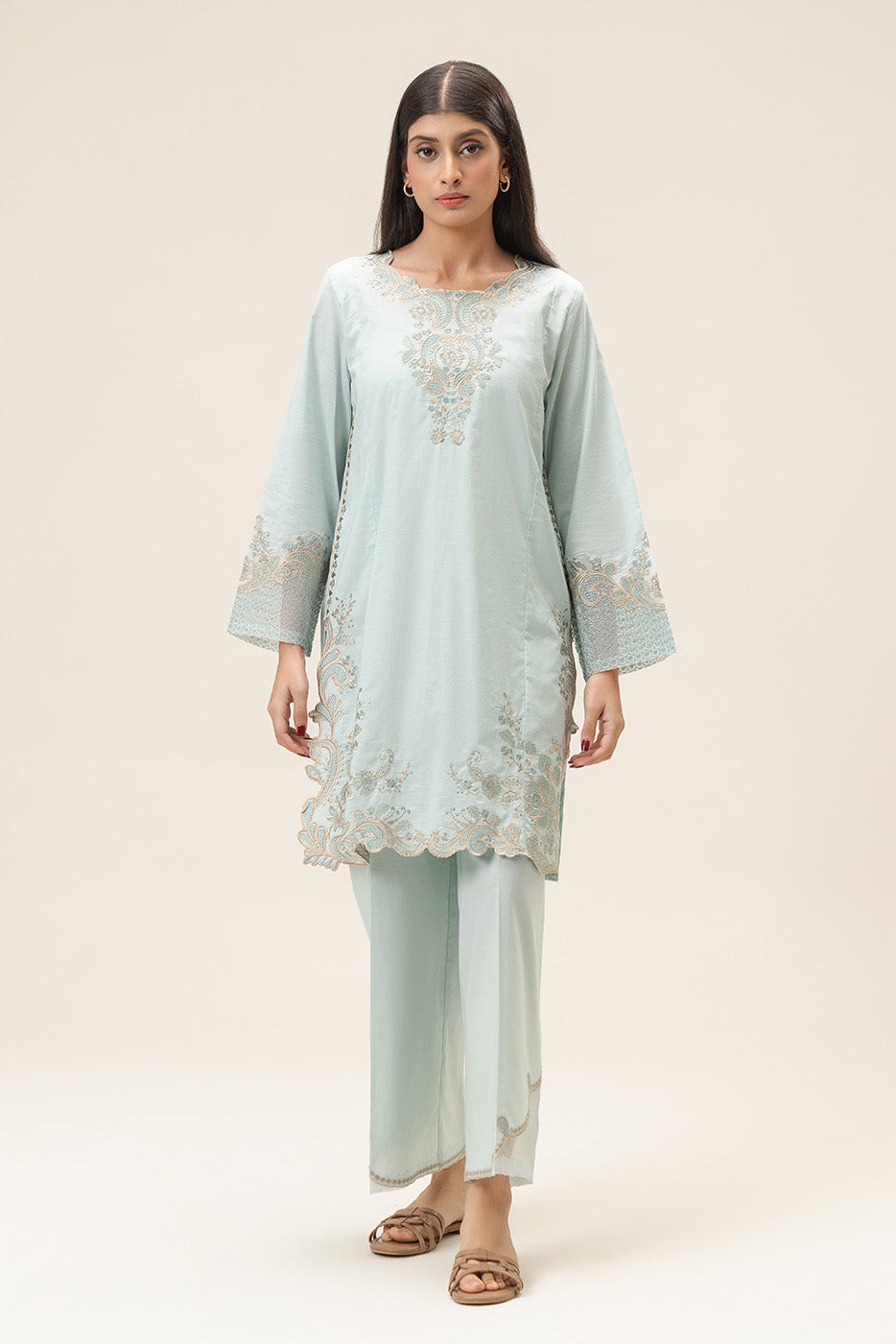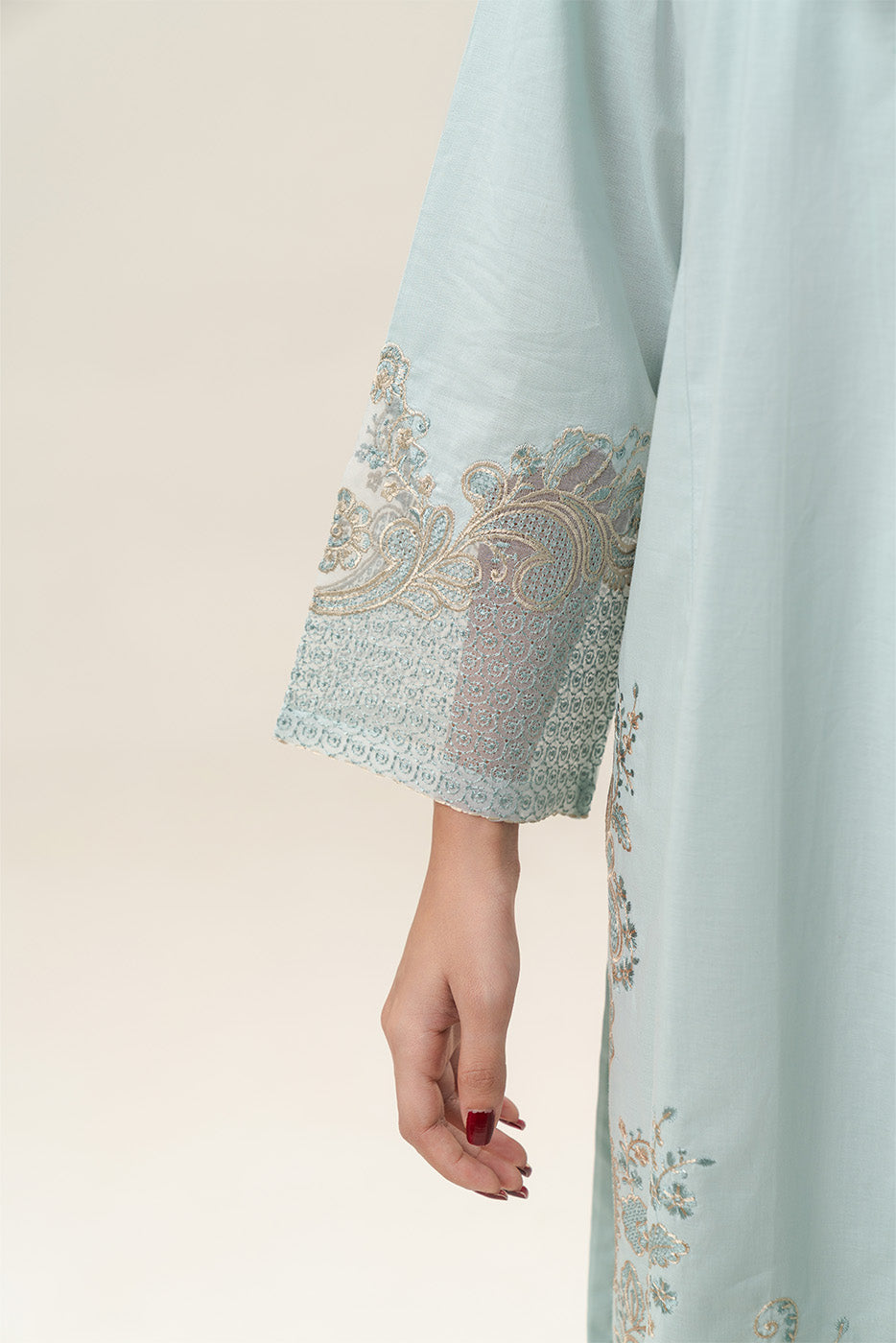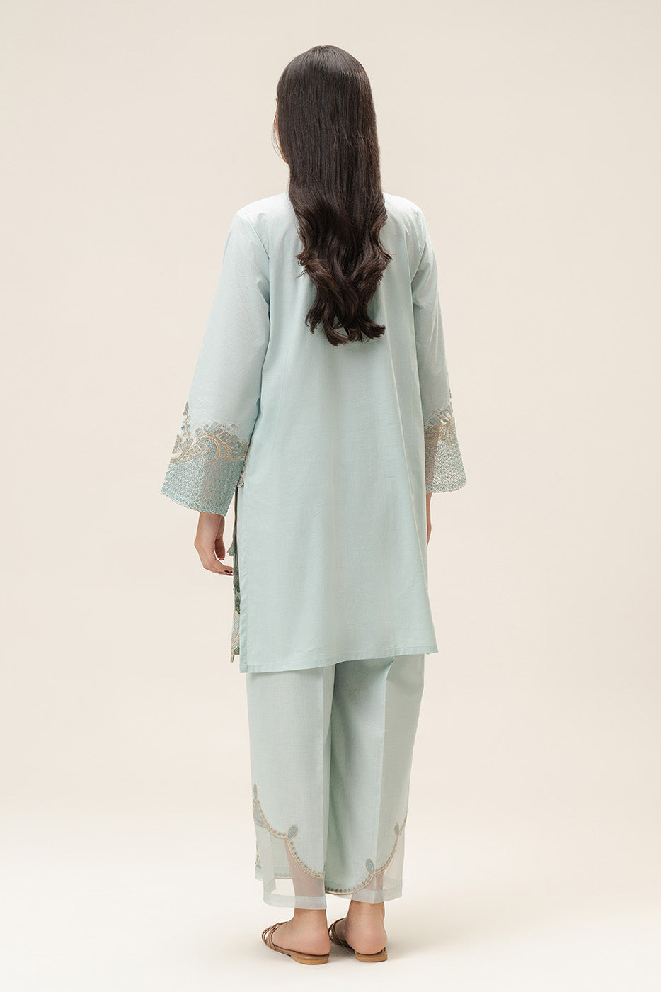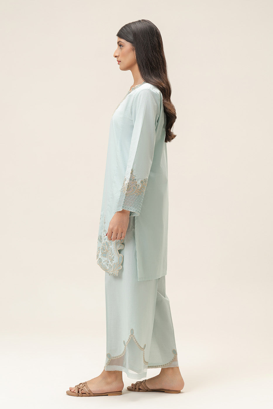 - Description: Embroiderd Short Length Shirt Along With Embroidared Sleeves, Paired With Culotte Pants.