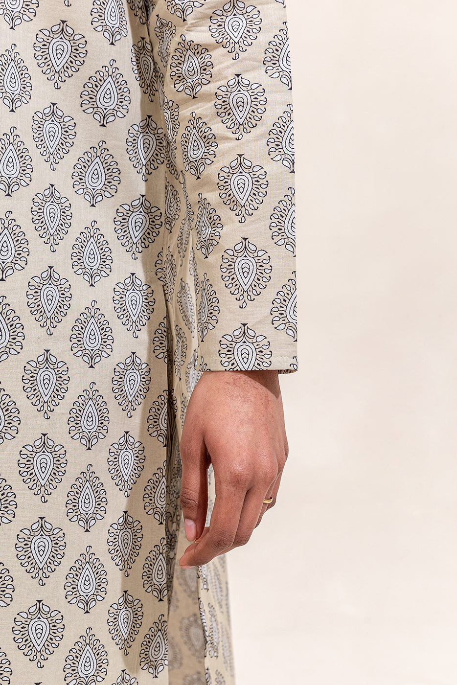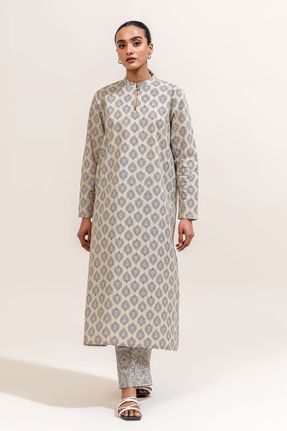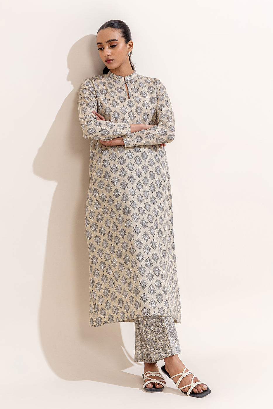 2 PIECE PRINTED LAWN SUIT-DOVE GRAY (UNSTITCHED)