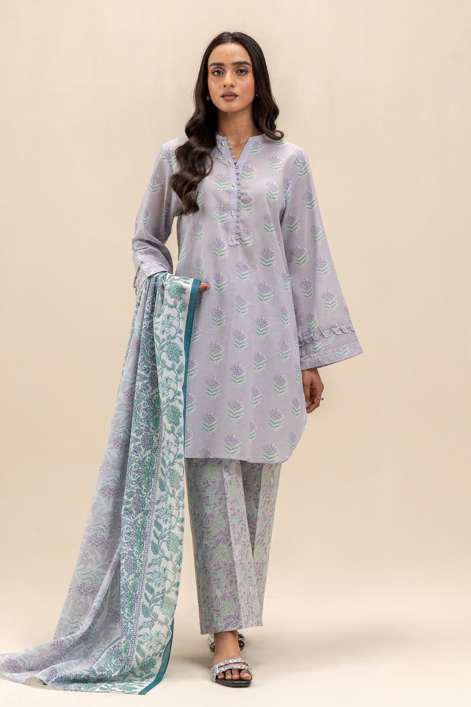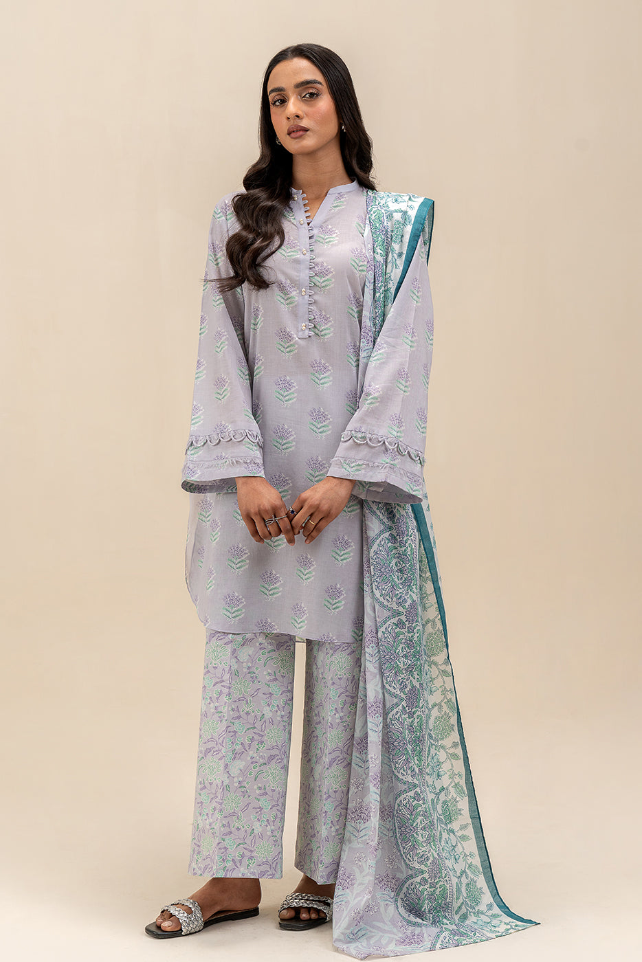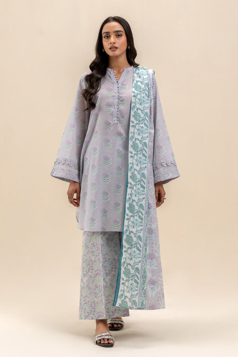 3 PIECE PRINTED LAWN SUIT-LAVENDER BLOOM (UNSTITCHED)