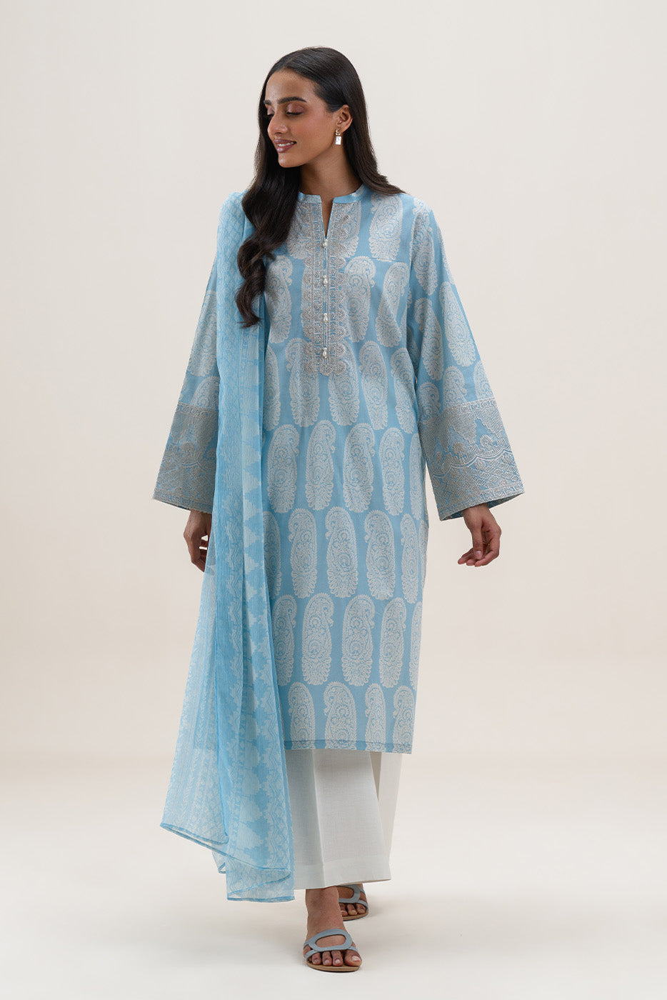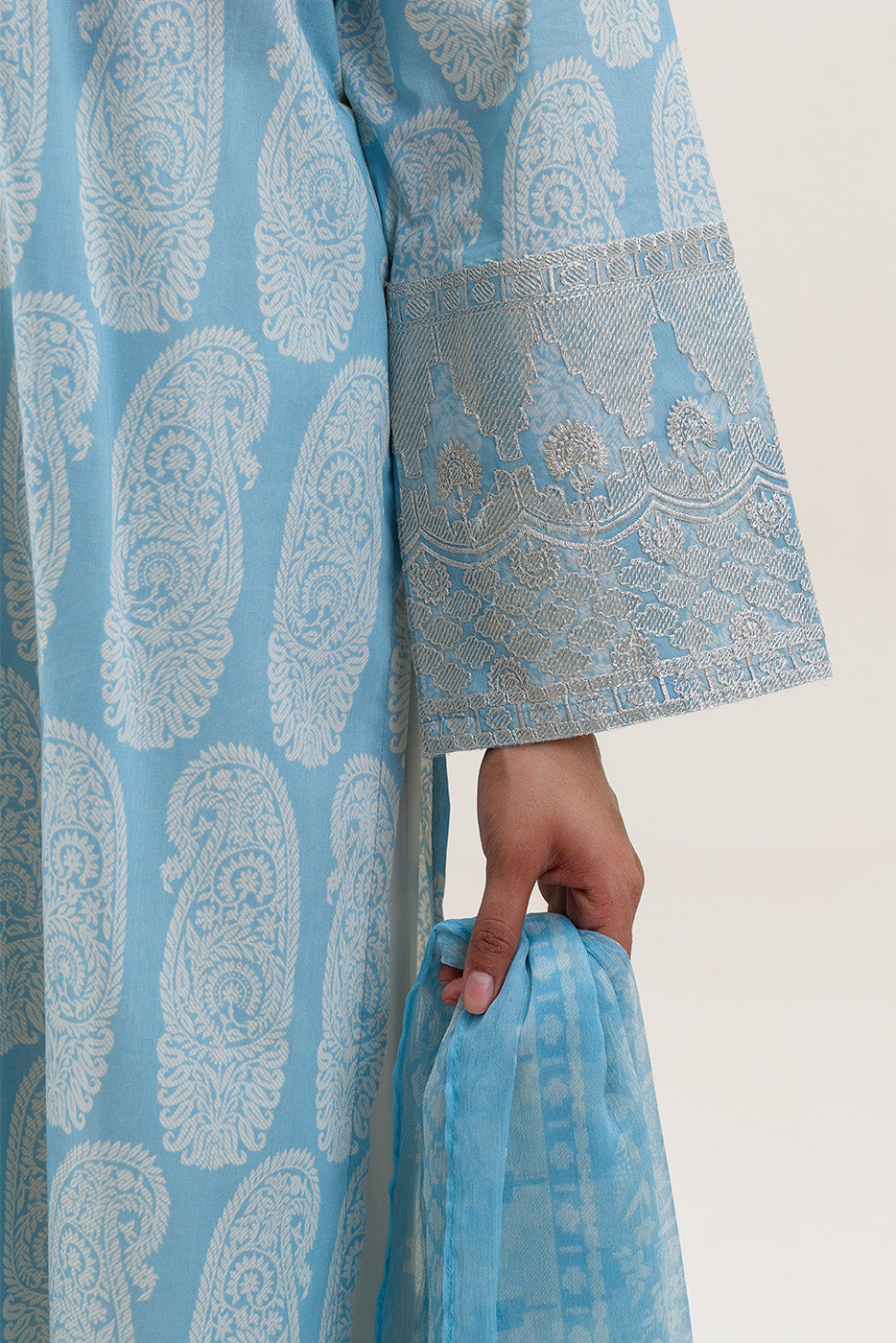 2 PIECE EMBROIDERED LAWN SUIT-BLUE FLAIR (UNSTITCHED)