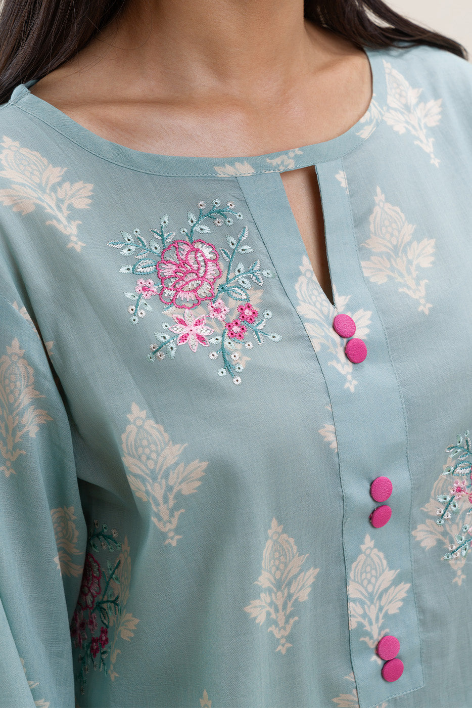 2 PIECE EMBROIDERED LAWN SUIT-ARCTIC BLUE (UNSTITCHED)
