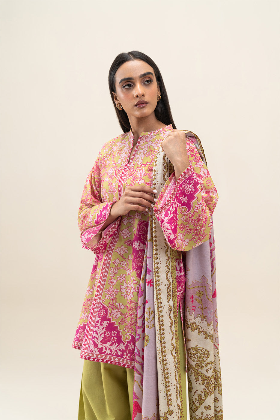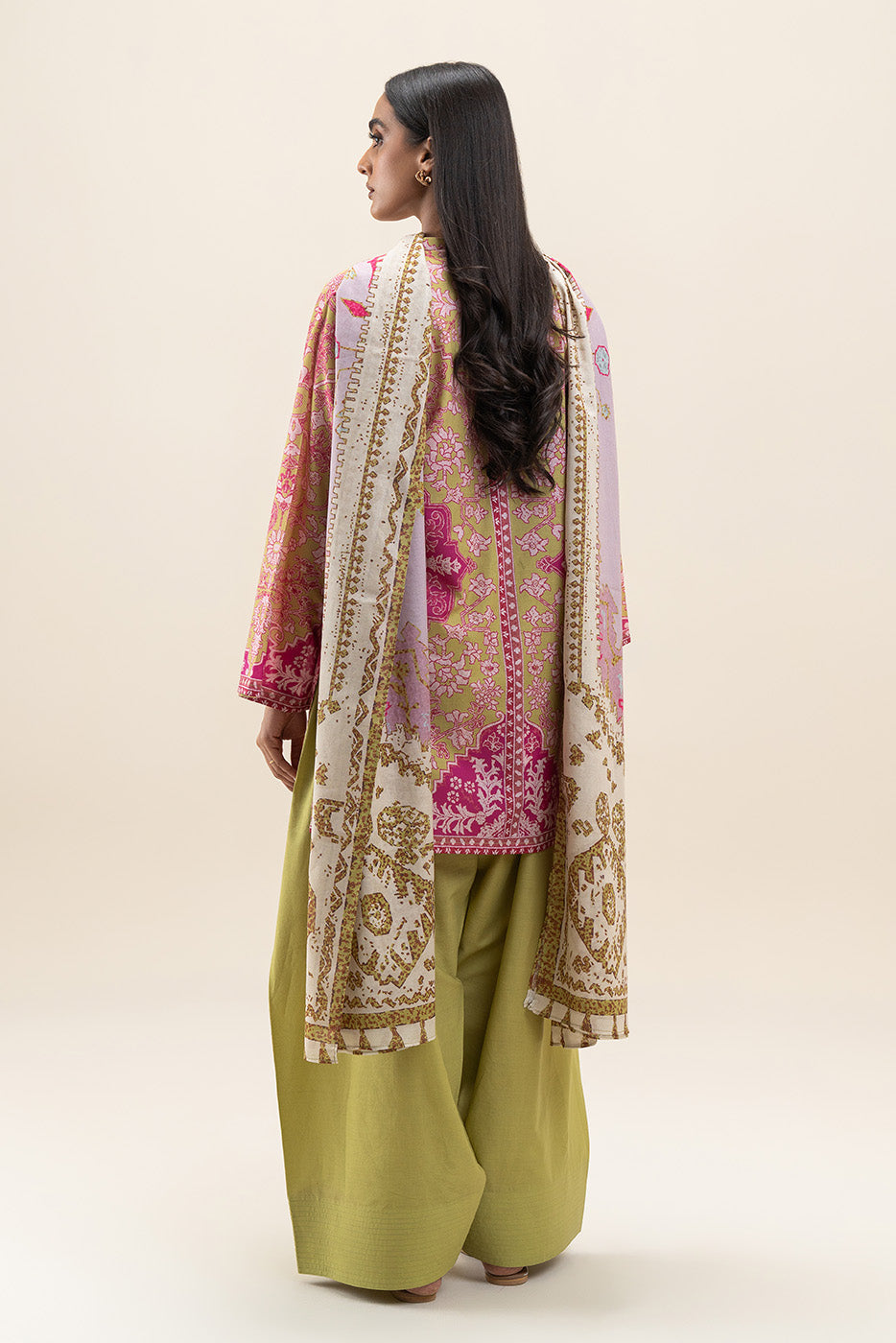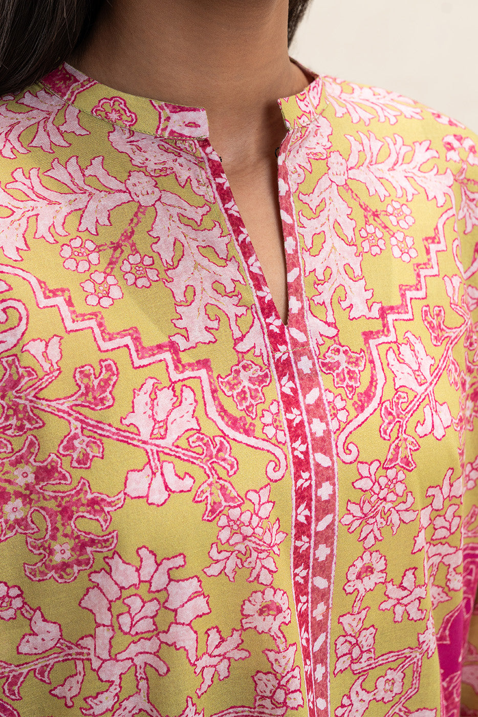 2 PIECE PRINTED LAWN SUIT-AZTEC LIME (UNSTITCHED)
