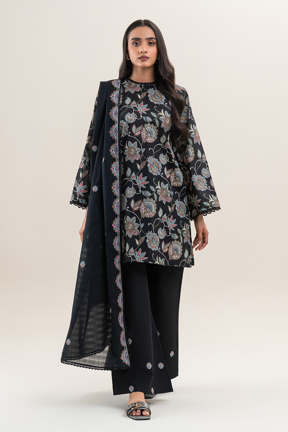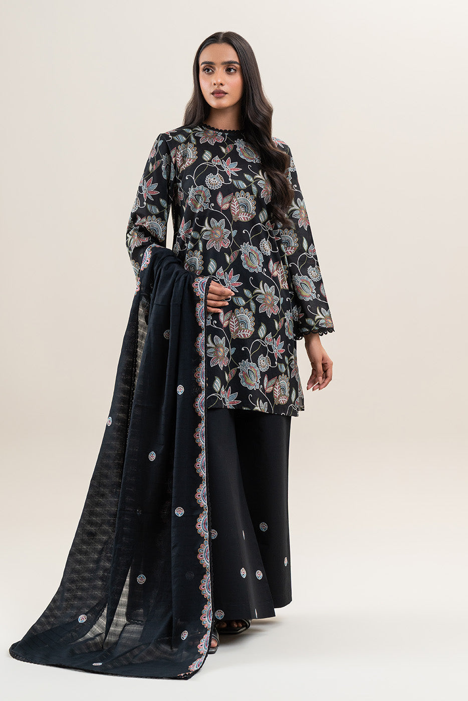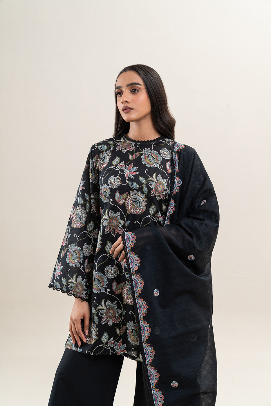 3 PIECE EMBROIDERED LAWN SUIT-CHARCOAL HINT (UNSTITCHED)