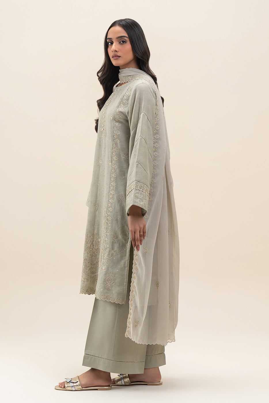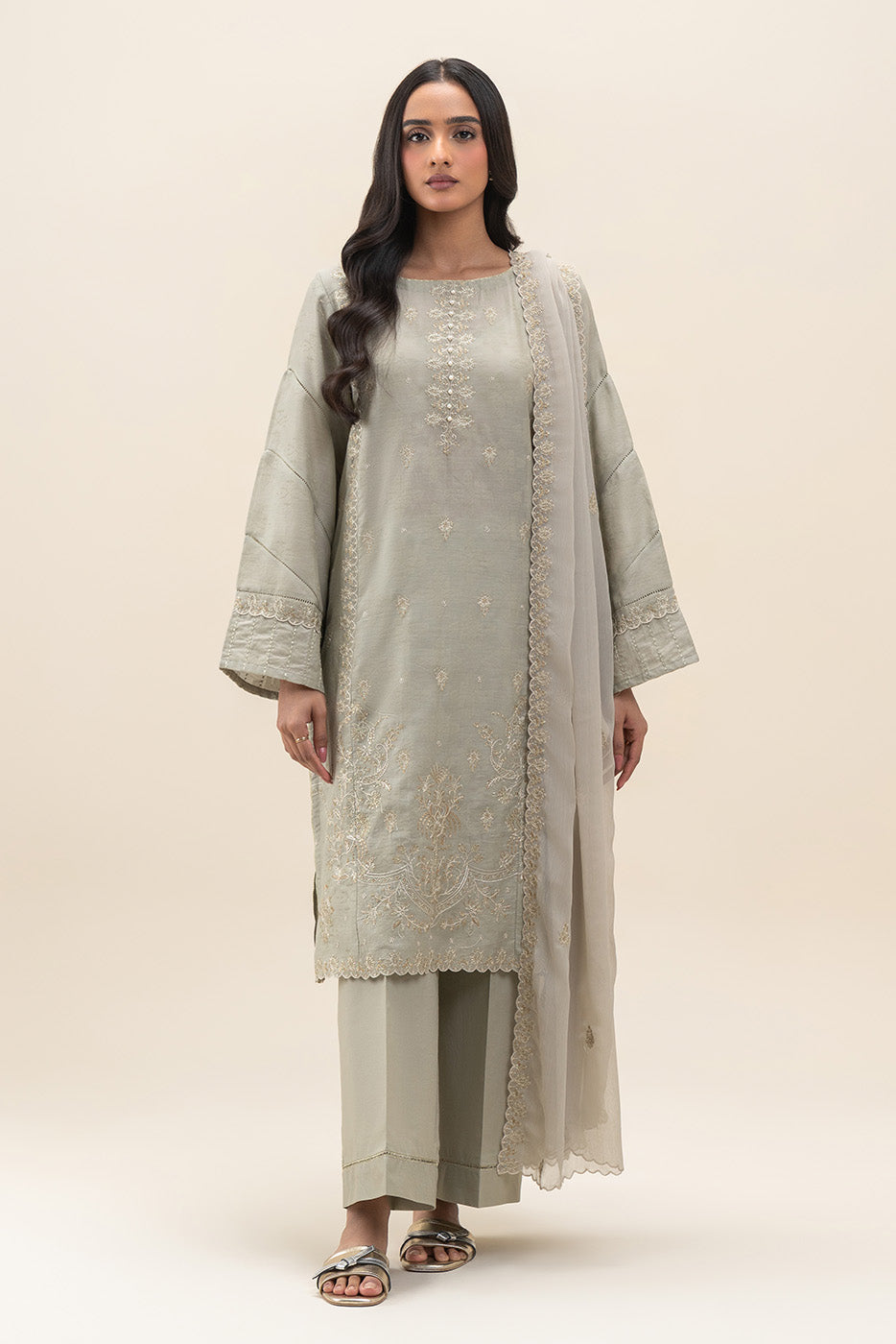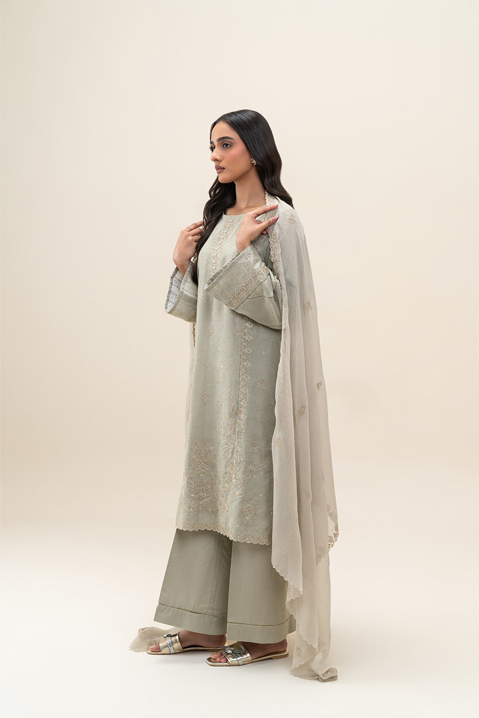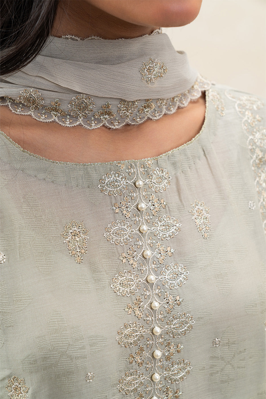 3 PIECE EMBROIDERED SELF JACQUARD SUIT-SABLE DUSK (UNSTITCHED)