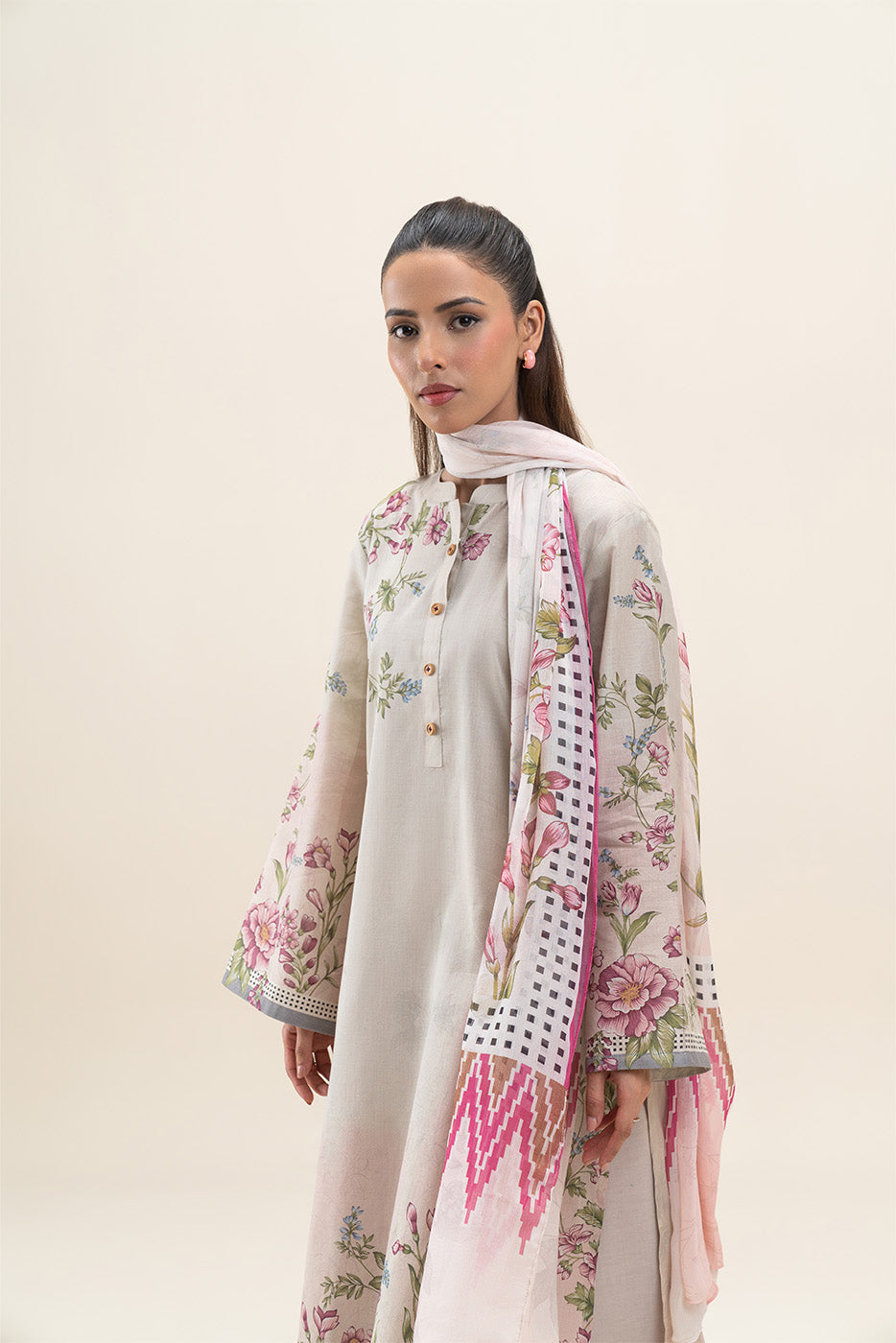 3 PIECE PRINTED SUIT-SOFT GARDENIA (UNSTITCHED)