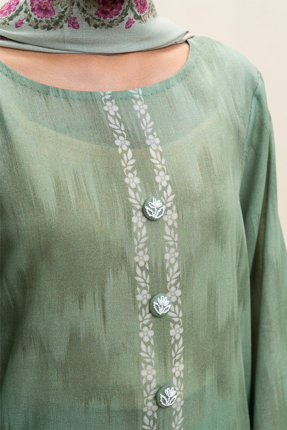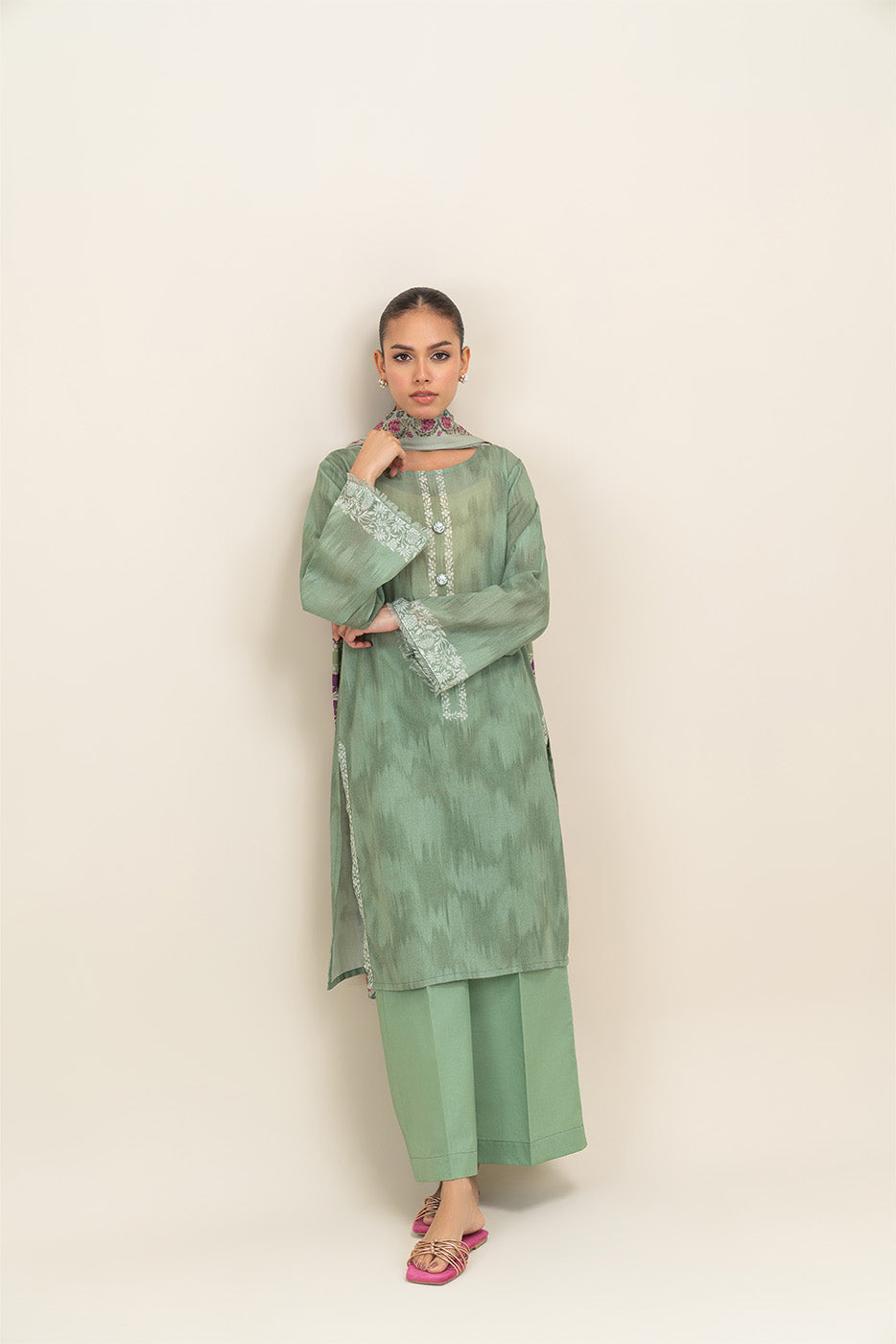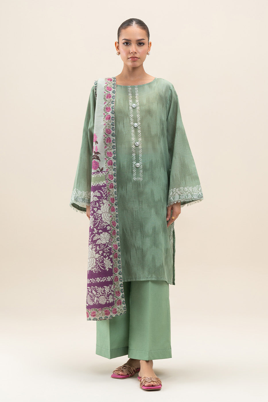 3 PIECE PRINTED LAWN SUIT-PALE GREEN (UNSTITCHED)