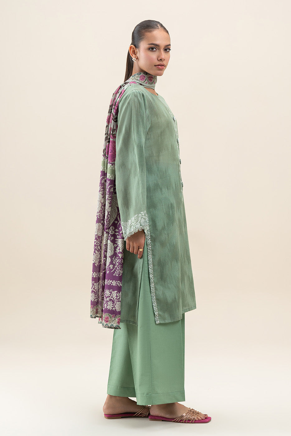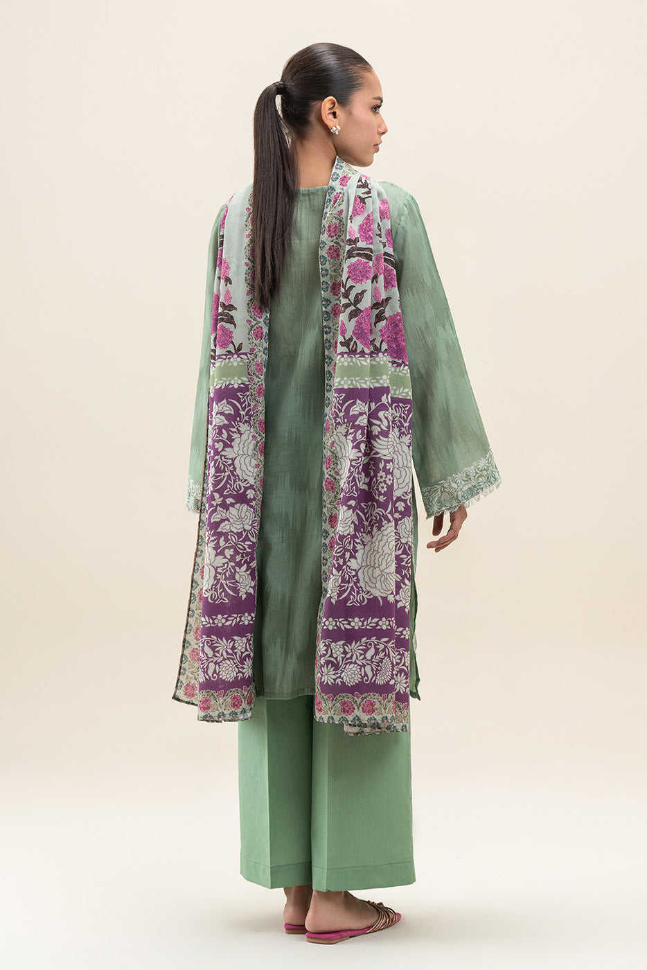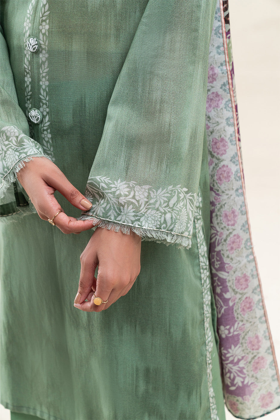 3 PIECE PRINTED LAWN SUIT-PALE GREEN (UNSTITCHED)