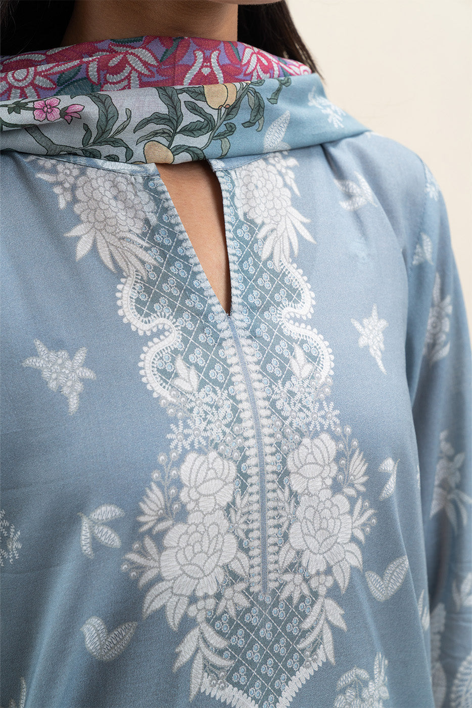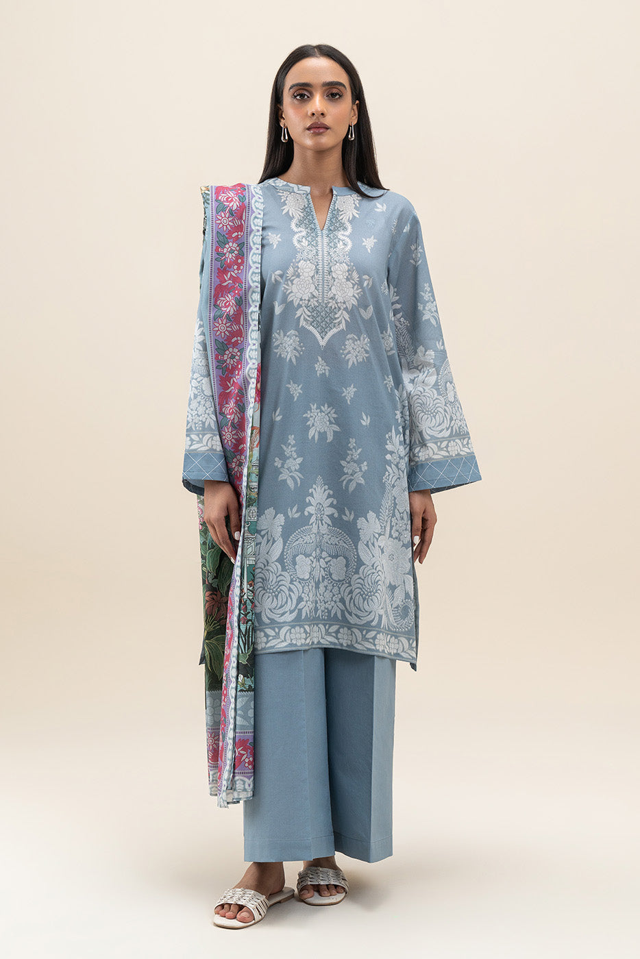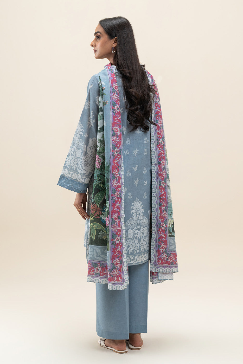 3 PIECE PRINTED LAWN SUIT-COBALT DREAM (UNSTITCHED)