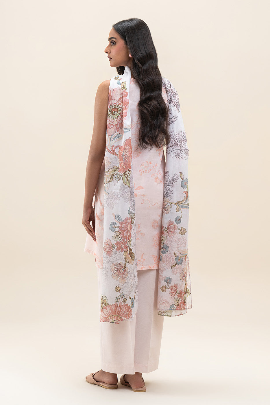 3 PIECE PRINTED LAWN SUIT-CORAL CARNATION (UNSTITCHED)