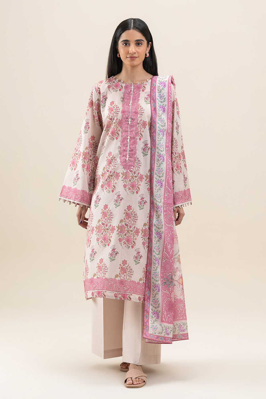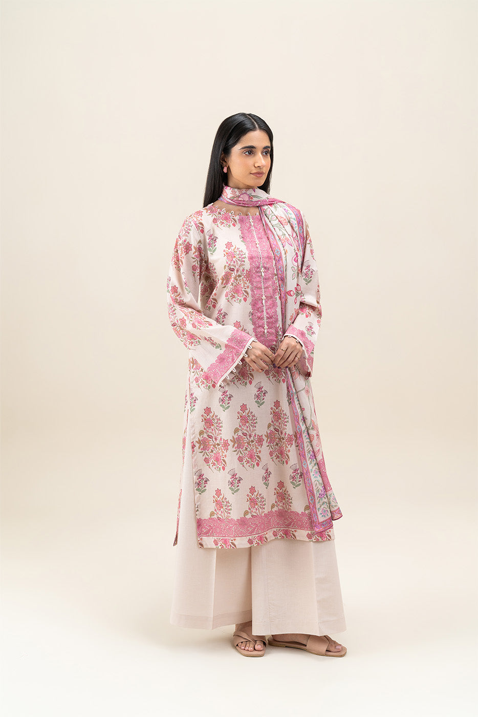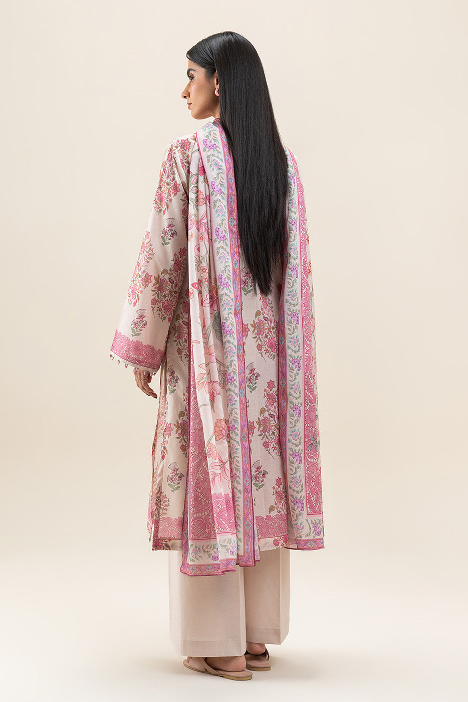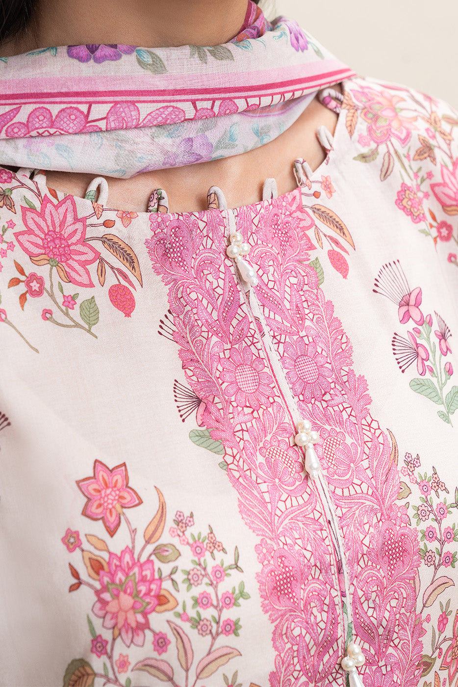 3 PIECE PRINTED LAWN SUIT-CARMINE ROSE (UNSTITCHED)
