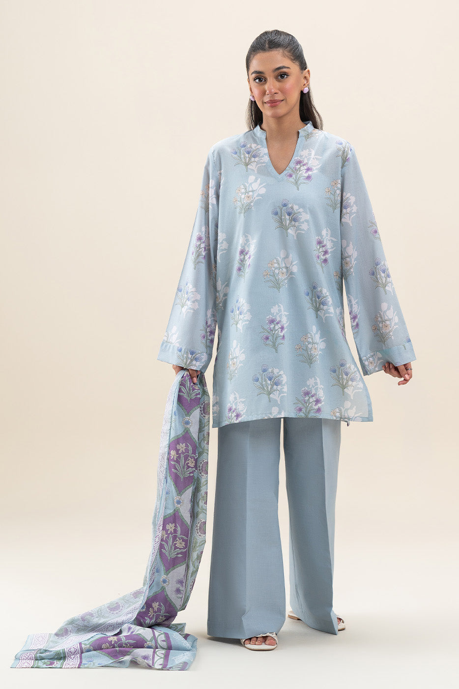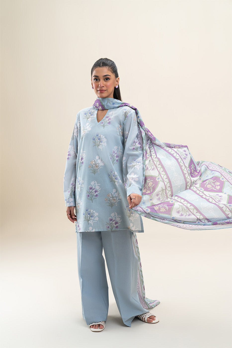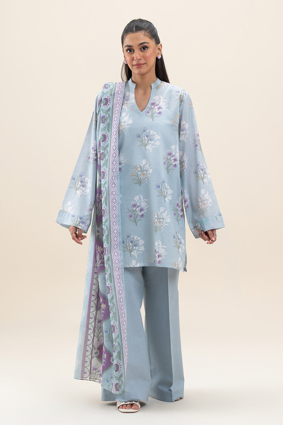 3 PIECE PRINTED LAWN SUIT-ARCTIC ROSE (UNSTITCHED)