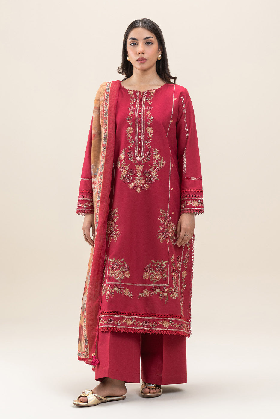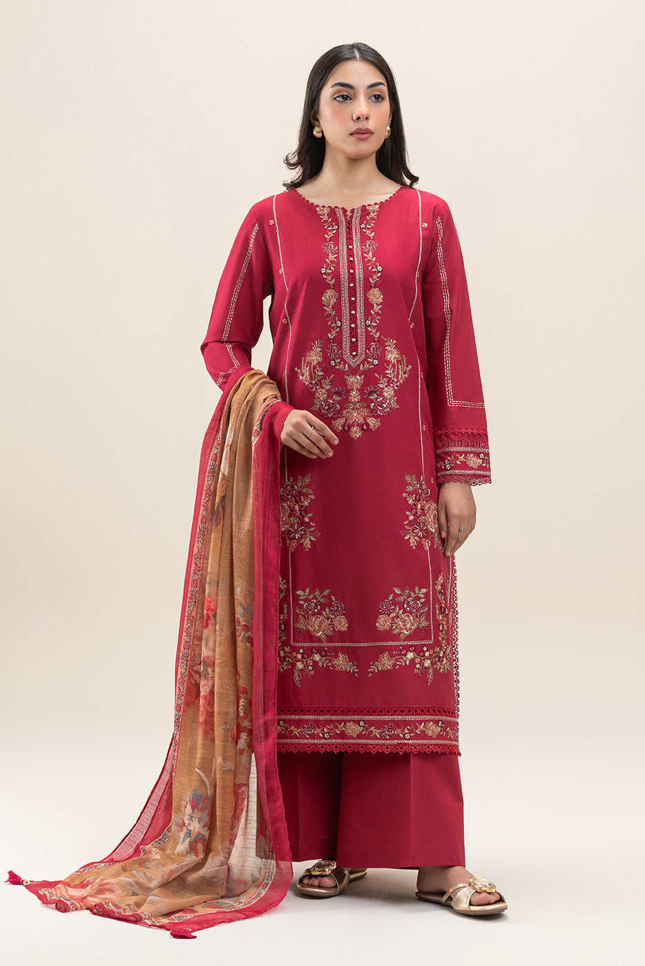 3 PIECE EMBROIDERED LAWN SUIT-GARNET VERVE (UNSTITCHED)