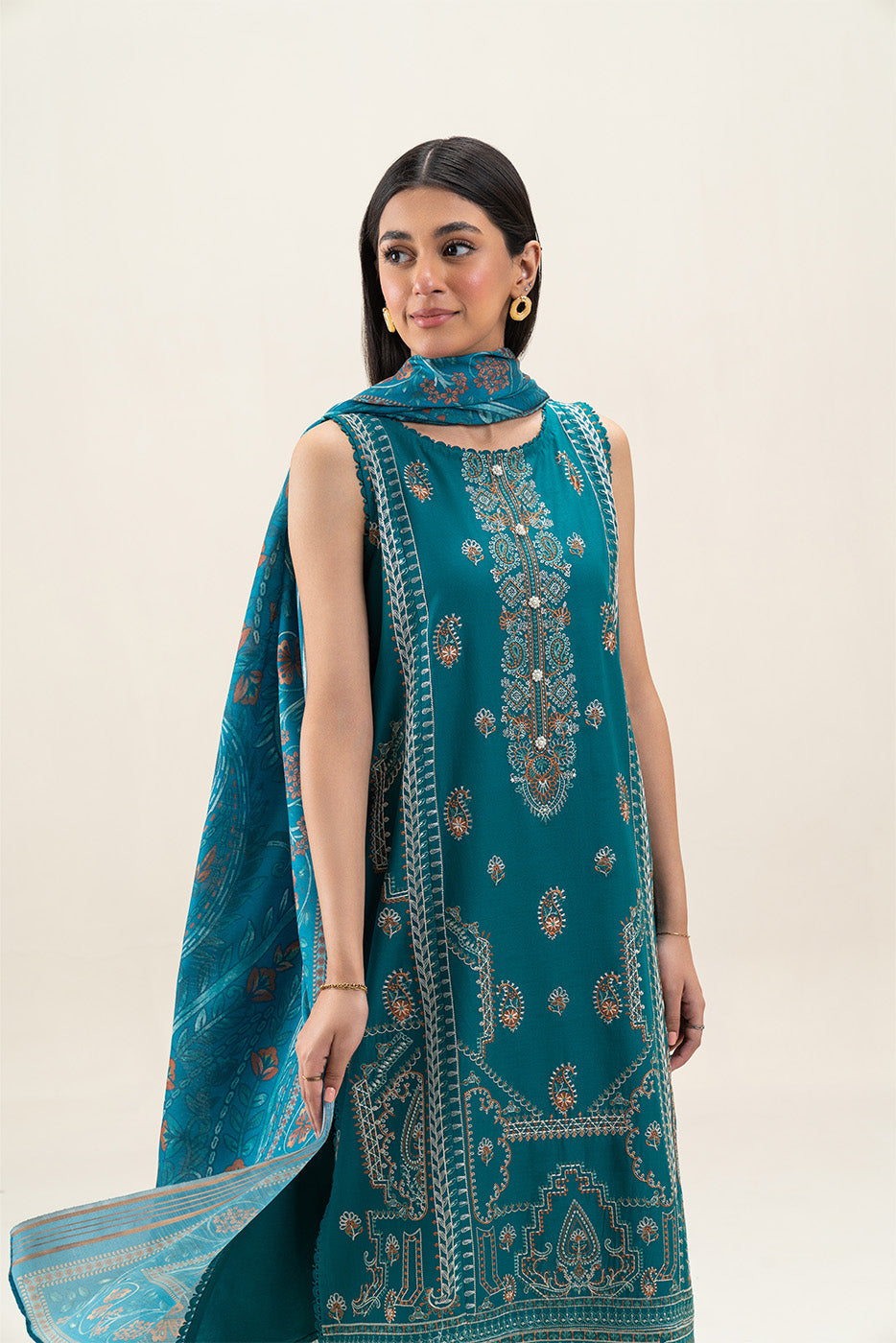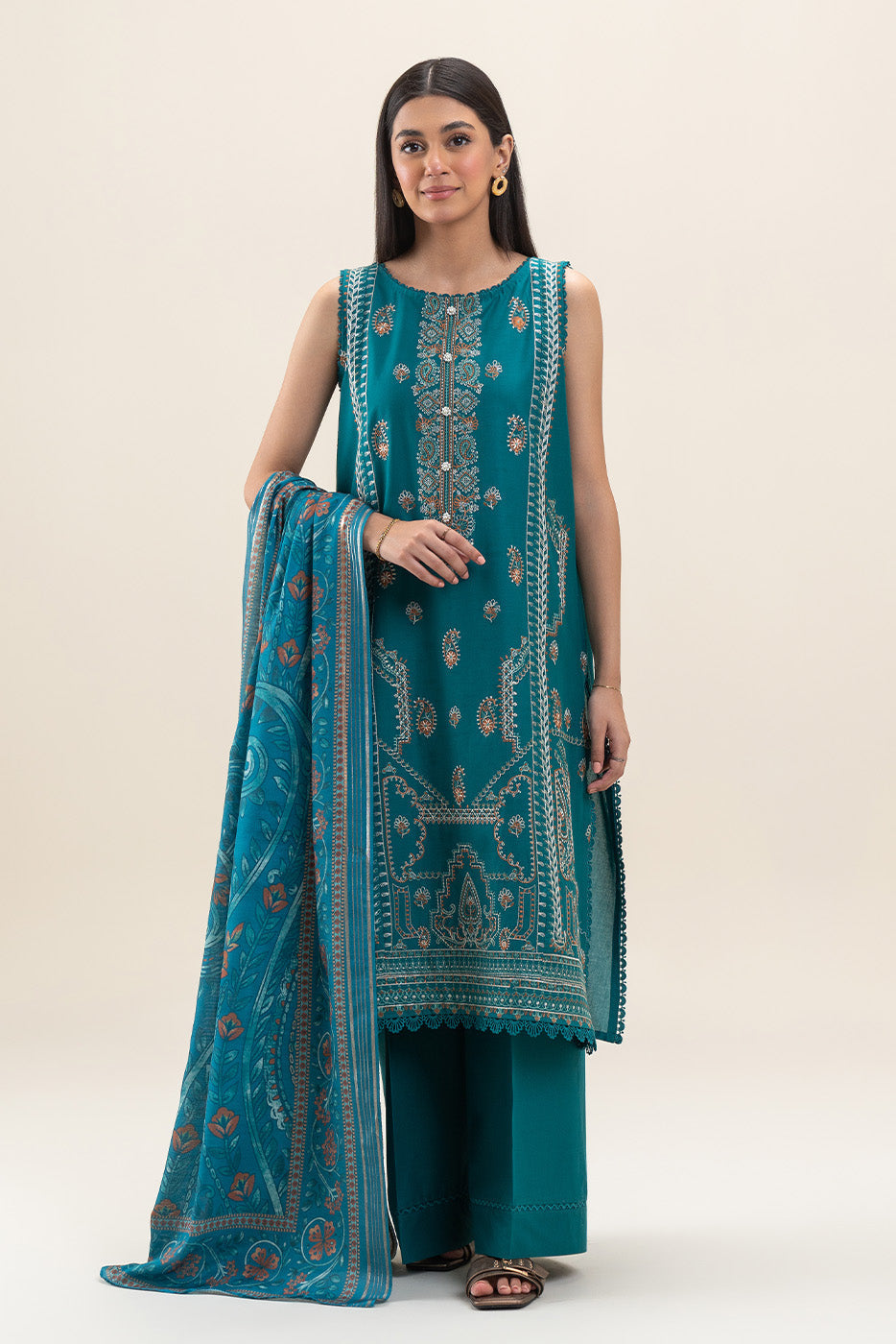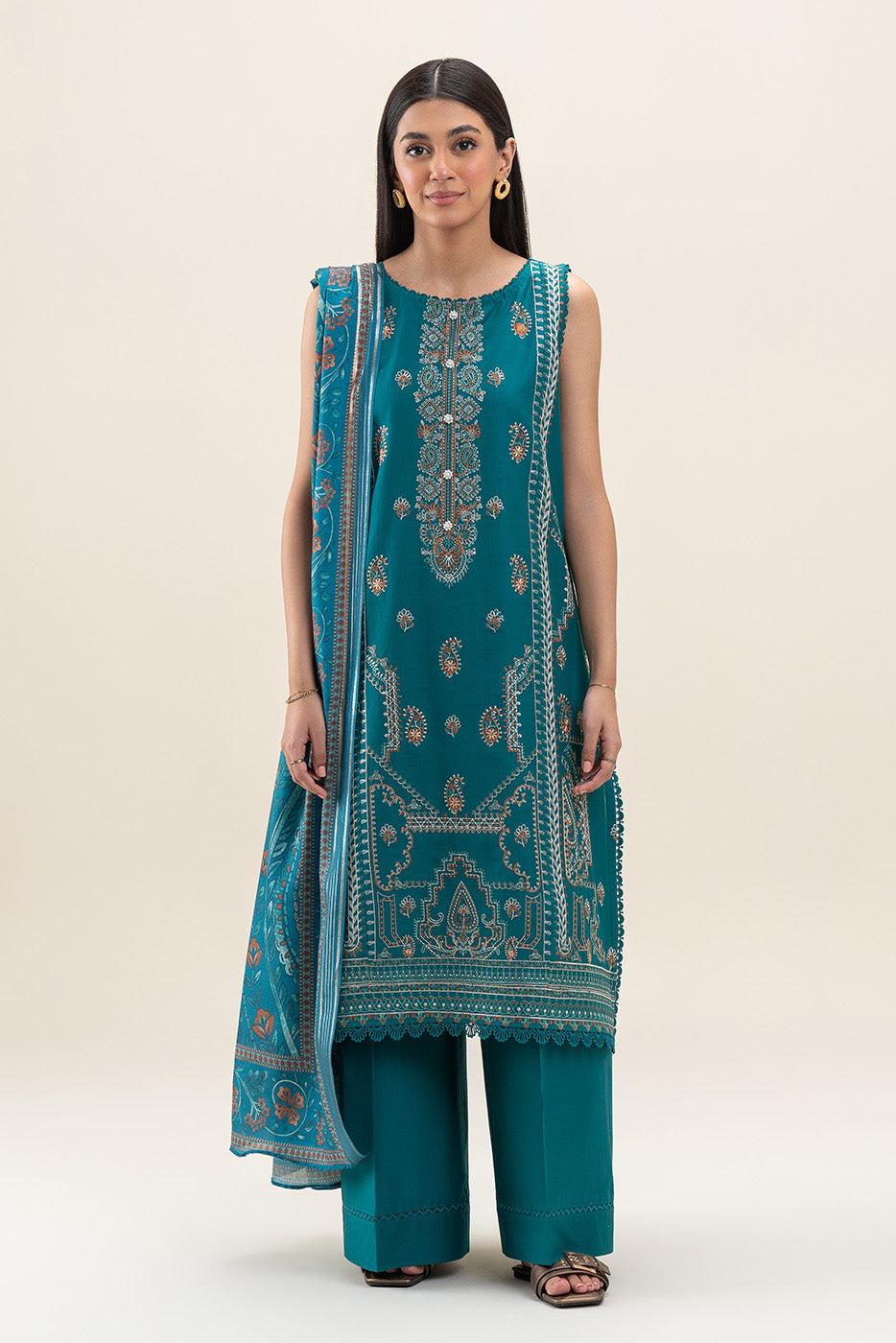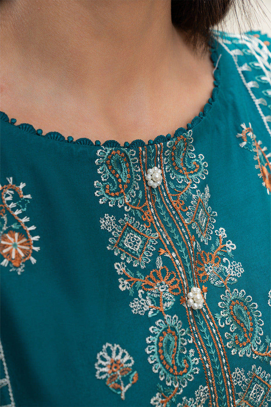 3 PIECE EMBROIDERED LAWN SUIT-AEGEAN TEAL (UNSTITCHED)