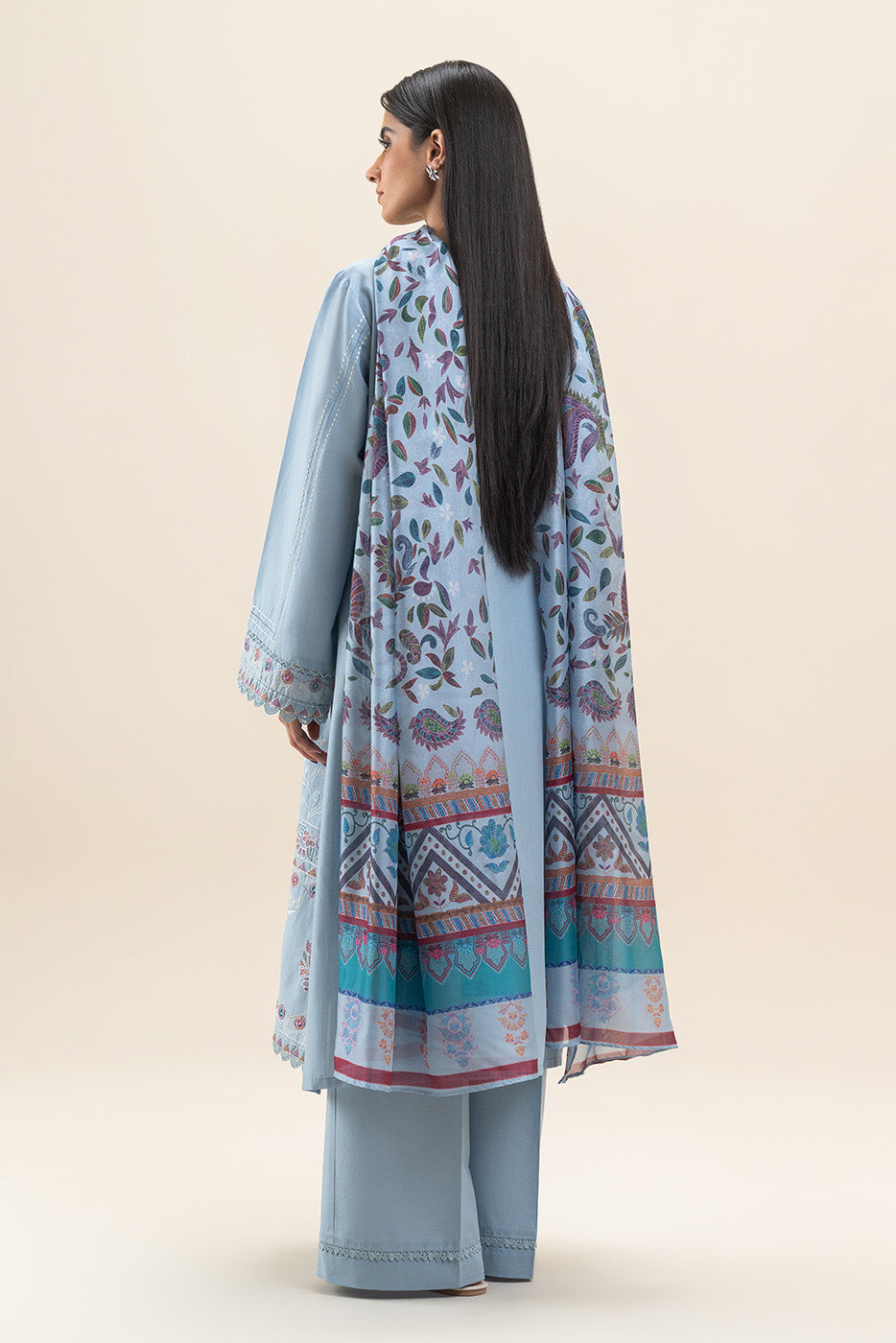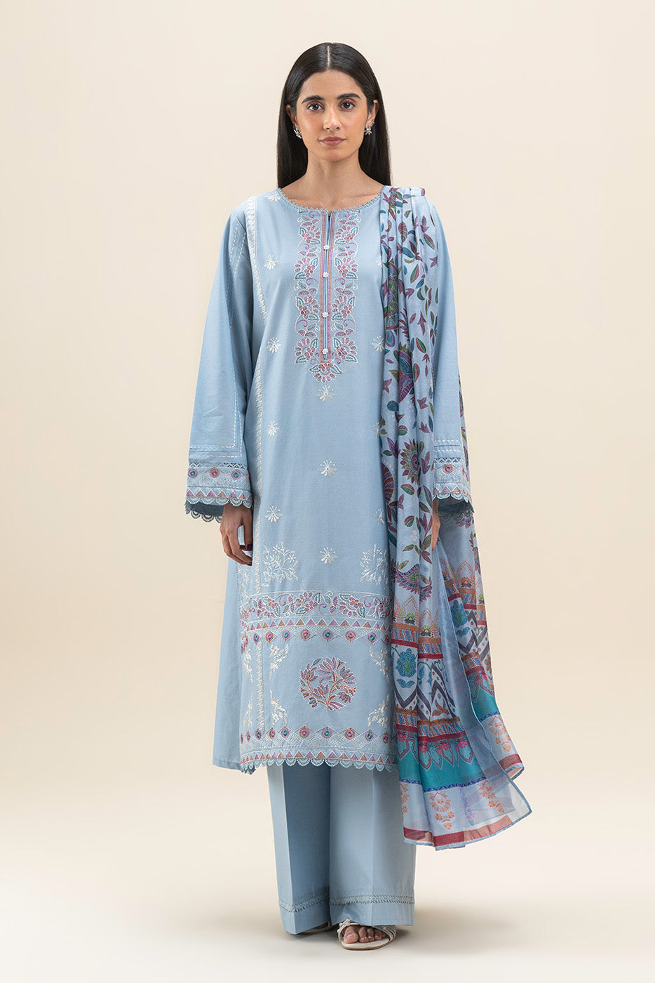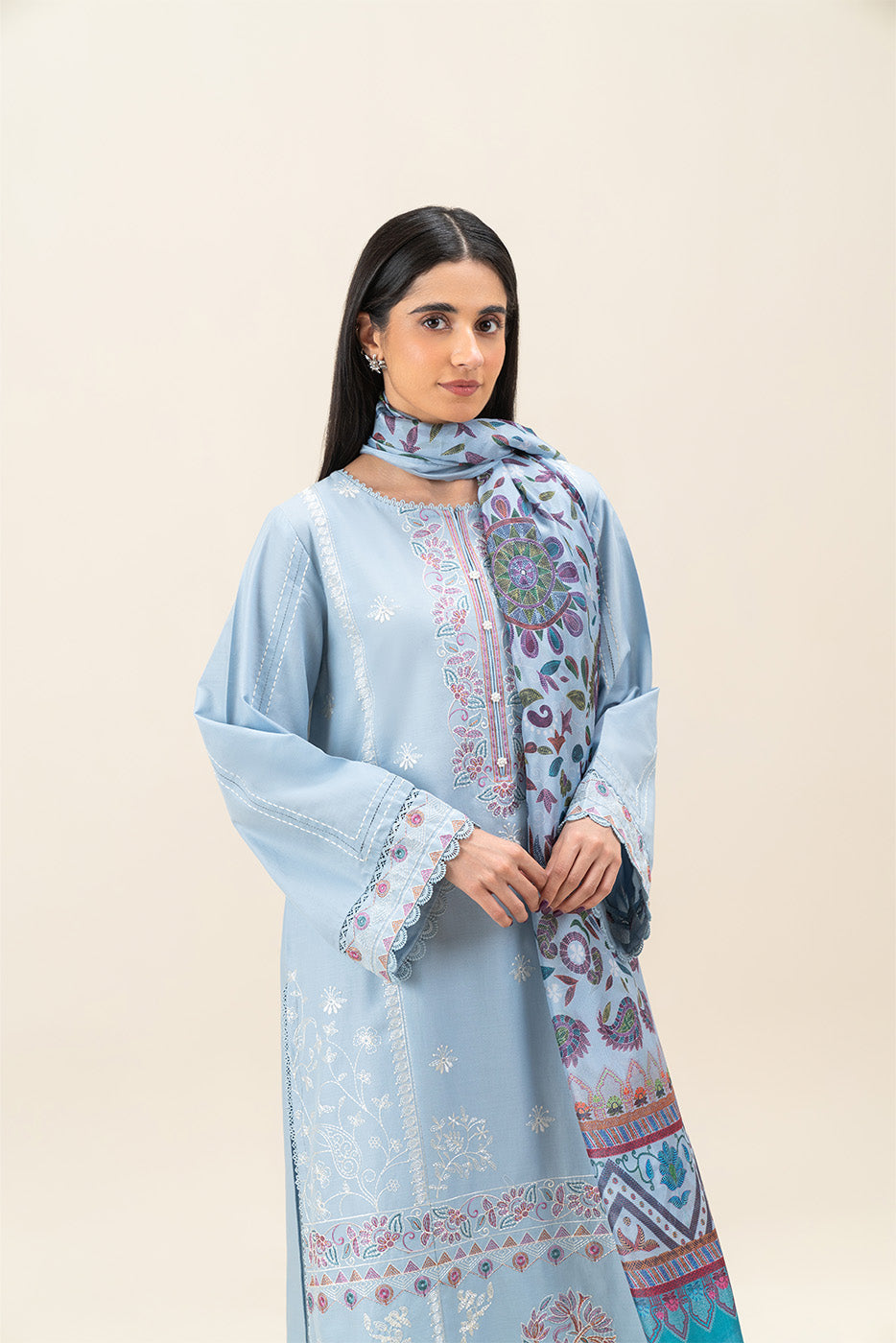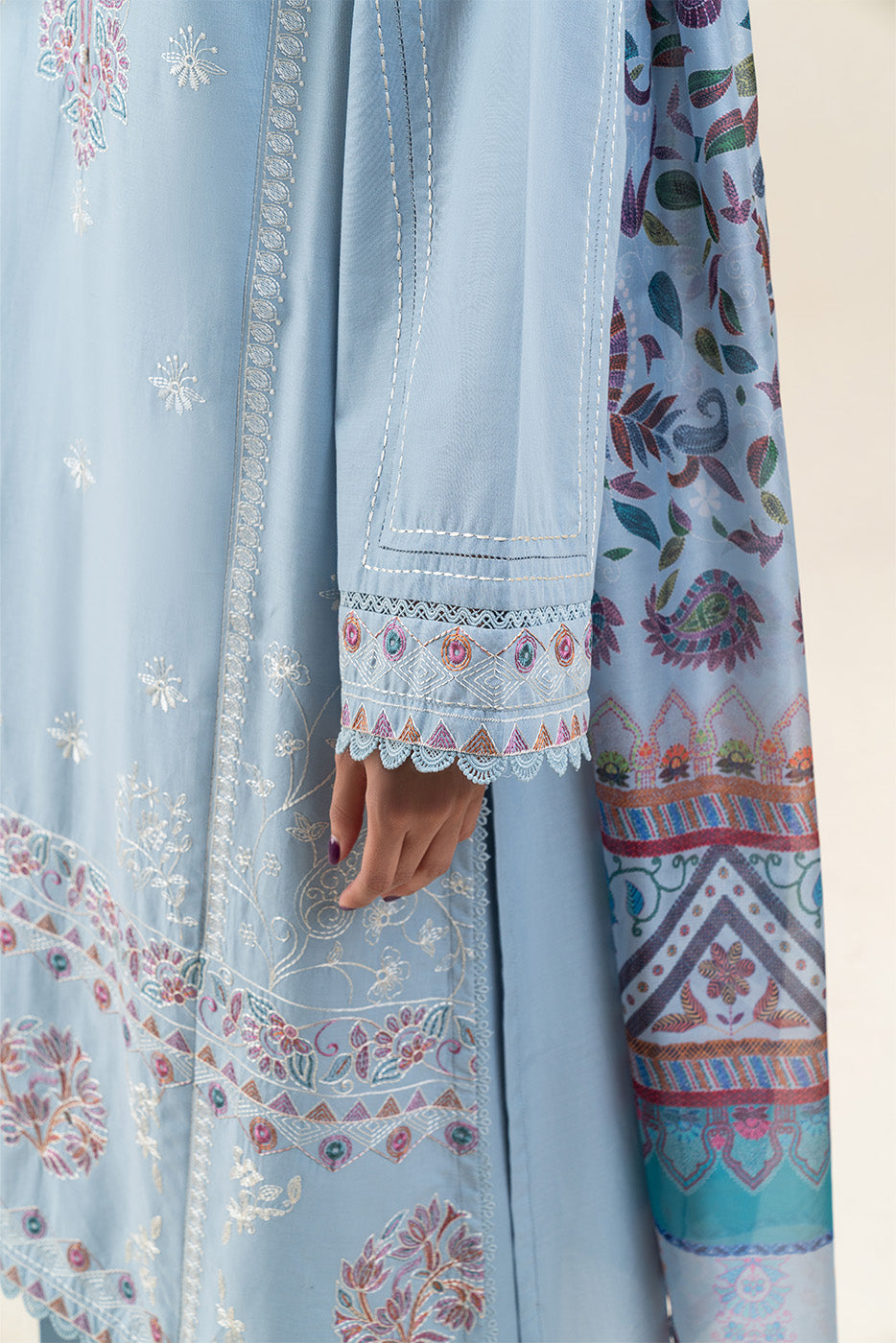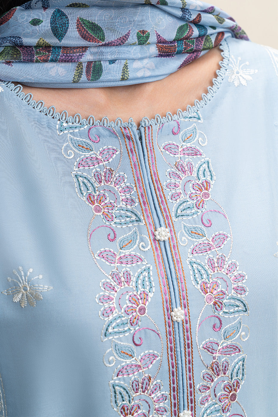 3 PIECE EMBROIDERED LAWN SUIT-CAROLINA BLUE (UNSTITCHED)