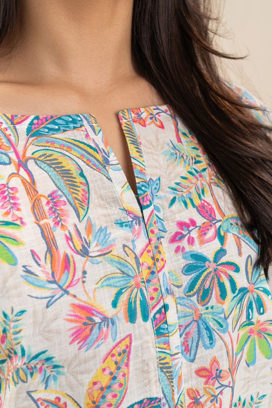 - Description: Basic Printed Shirt With Round Neckline And Placket With Slit, And Laces Detail On Sleeves.Paired With Farshi Shalwar To Complete The Look.