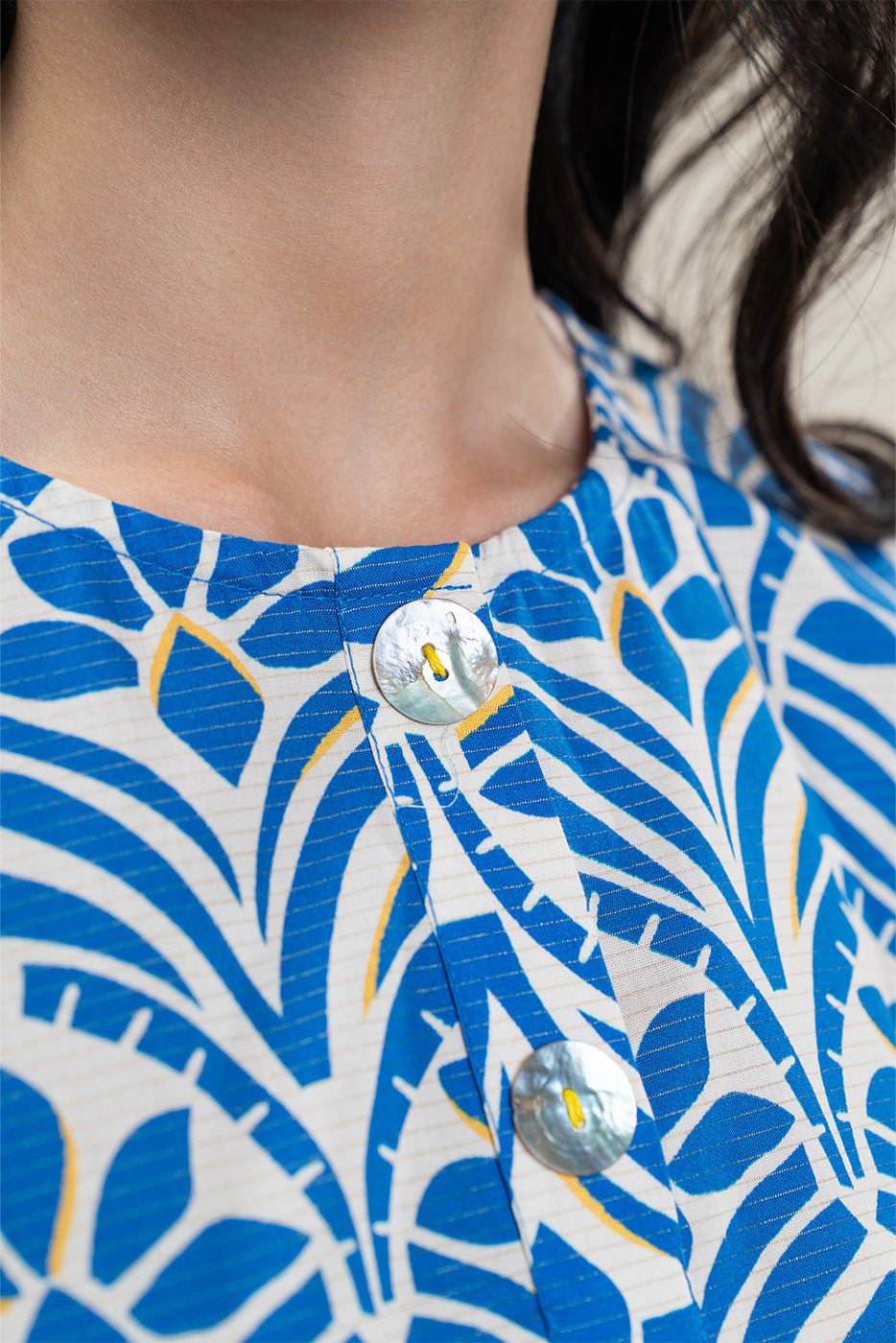 - Description: Digital Printed Mid Length Shirt With Accessories On Neckline Paired With Culotte.
