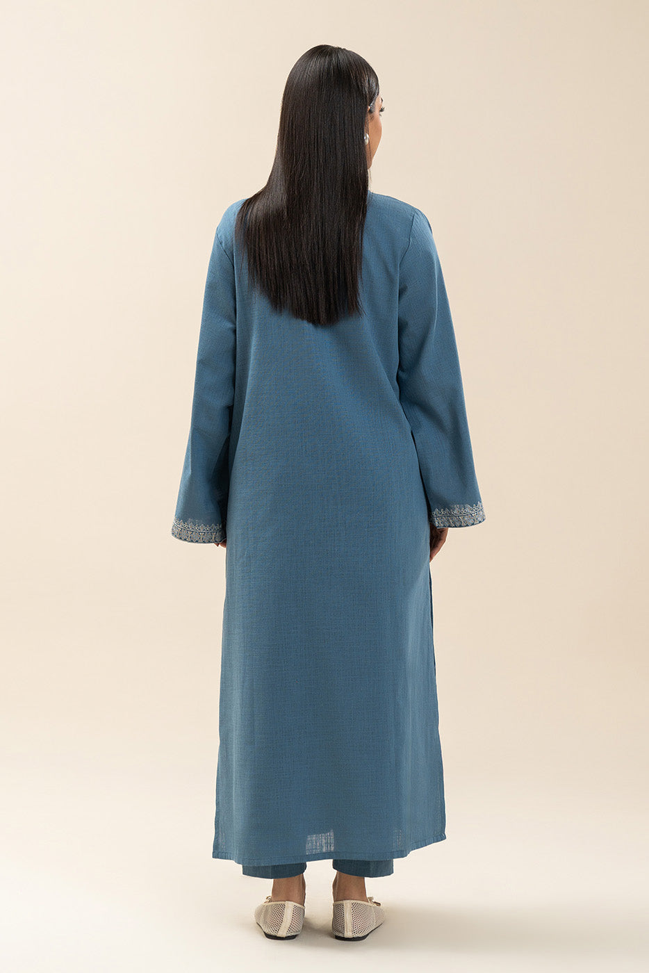 - Description: 2Pc Embroidered Long Length Shirt Along With Embroidery On Sleeves And Neckline, Paired With Straight Pants.