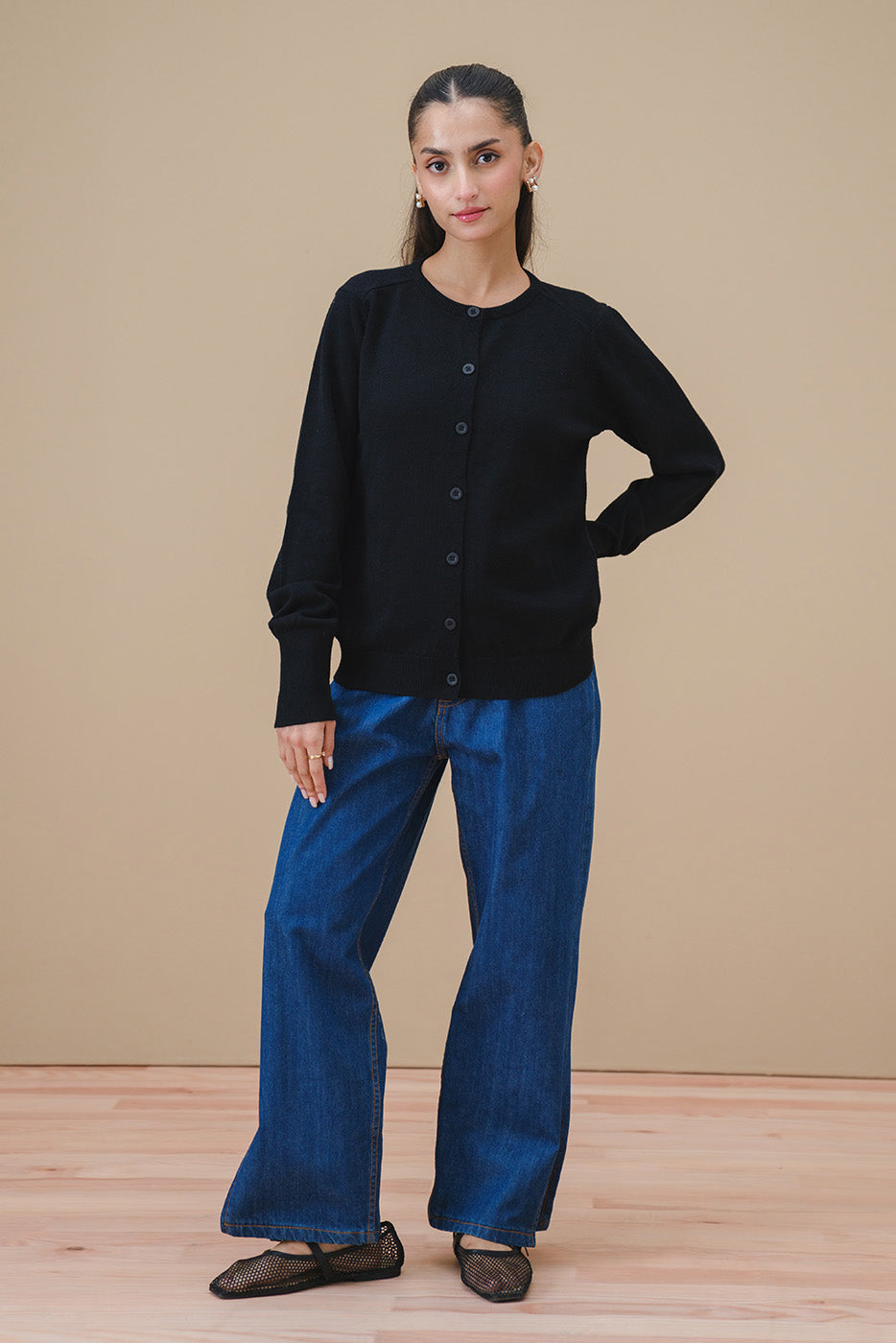 - Description: Crew Neck Clean-Knit Cardigan With Front Closure,Regular Sleeves And Ribbed Hem Detail