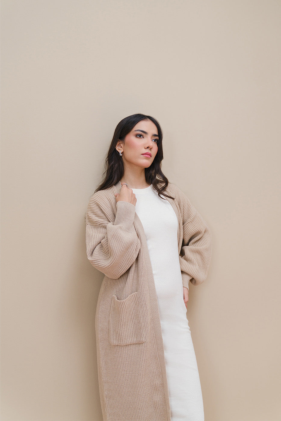 - Description: Bishop Sleeve Shrug With Drop Shoulder, Pockets And Ribbed Hem
