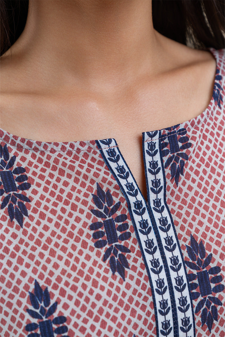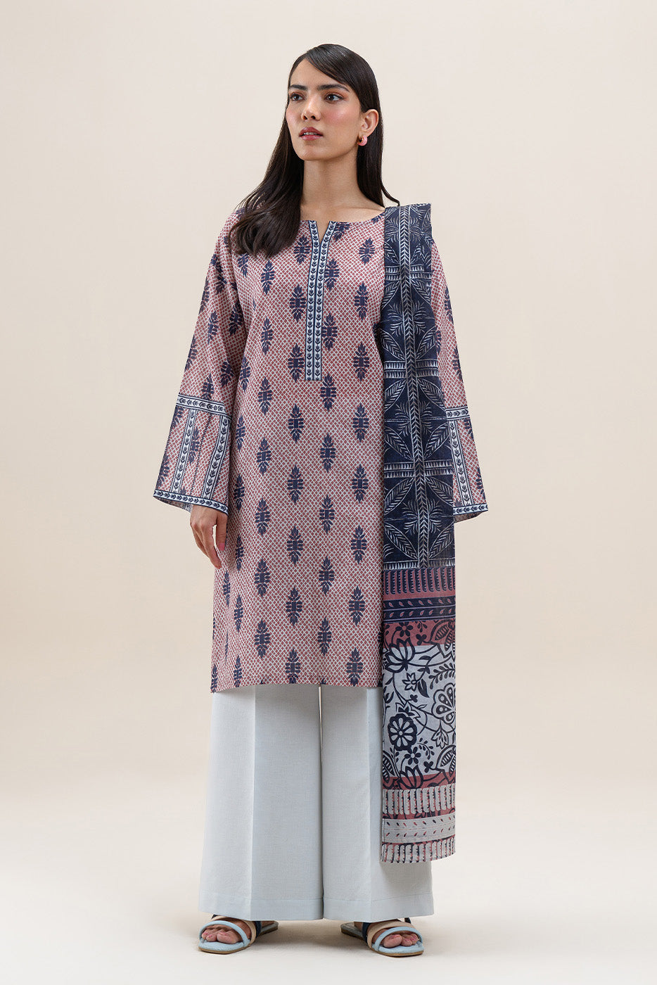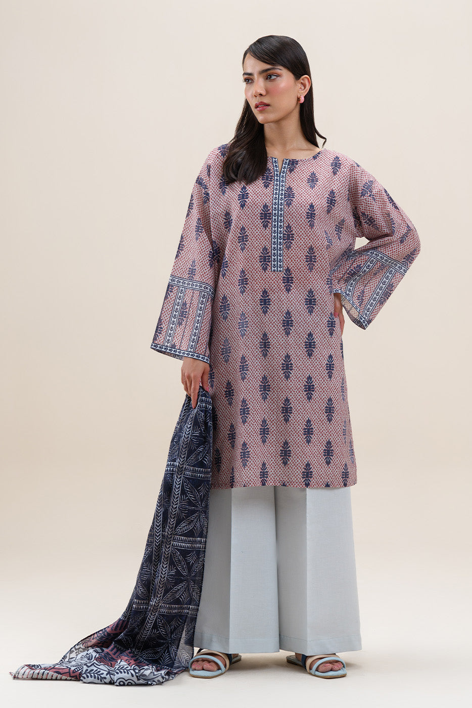 3 PIECE PRINTED LAWN SUIT-ROUGE GLEAM (UNSTITCHED)
