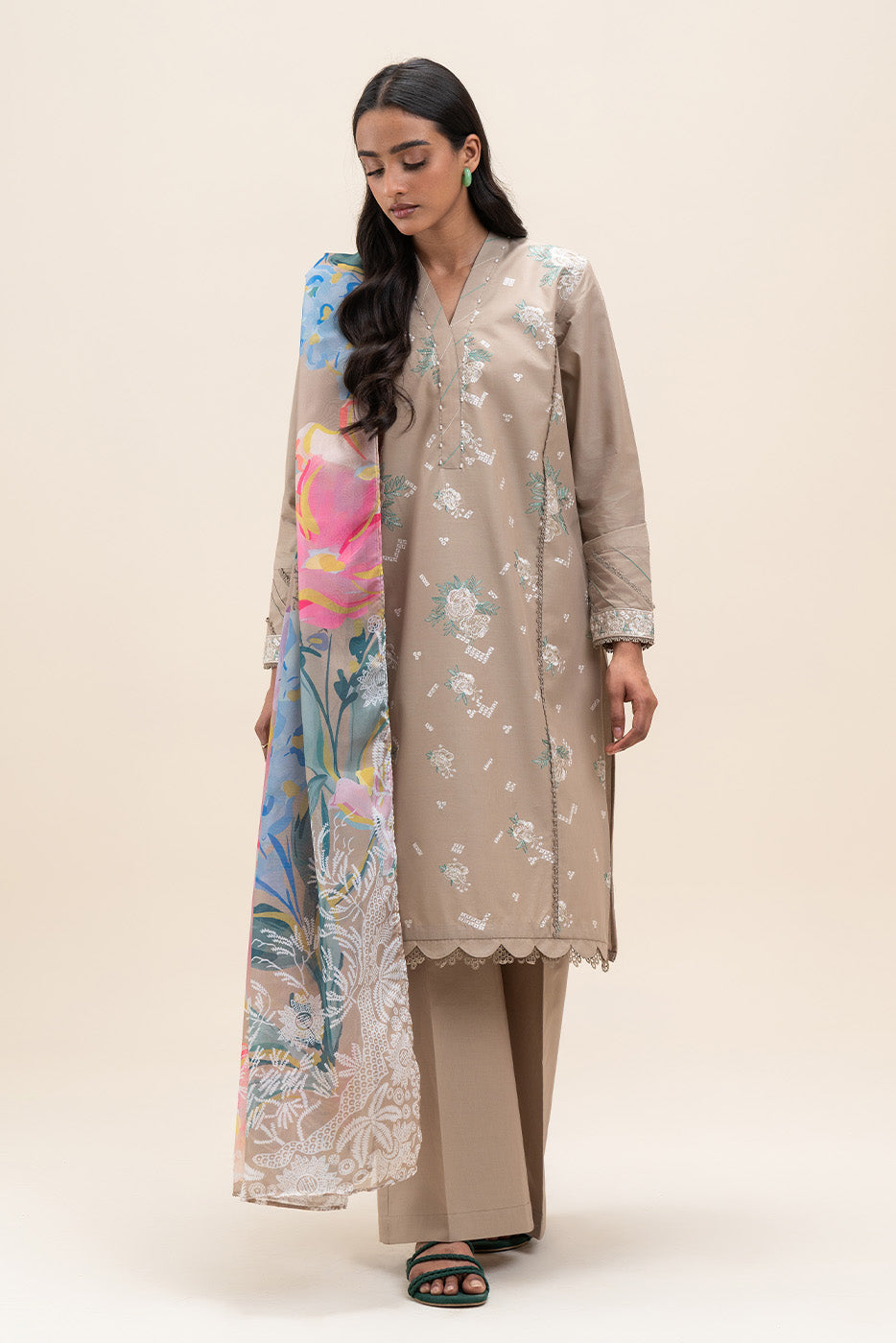 3 PIECE EMBROIDERED LAWN SUIT-HAZEL WOOD (UNSTITCHED)