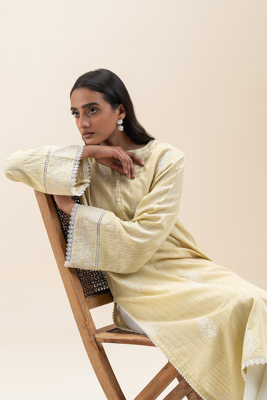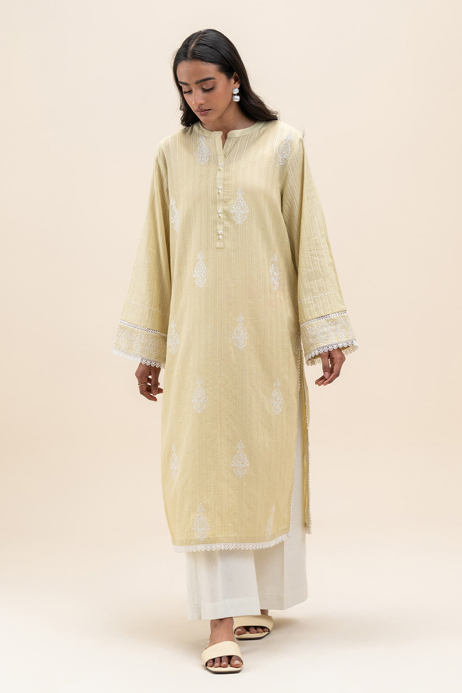 1 PIECE EMBROIDERED LENO KARRA SHIRT-LIME GLAM (UNSTITCHED)