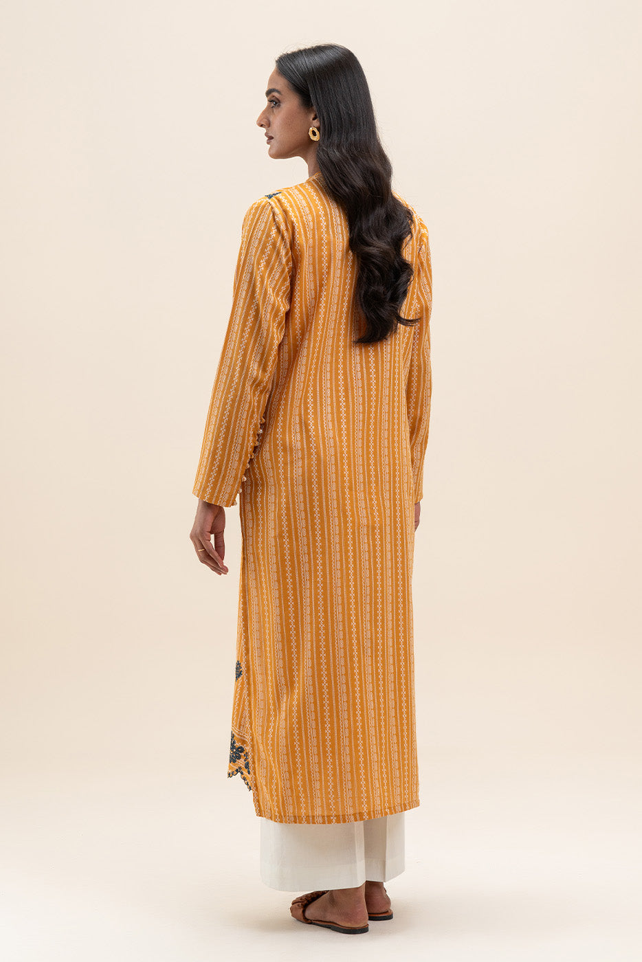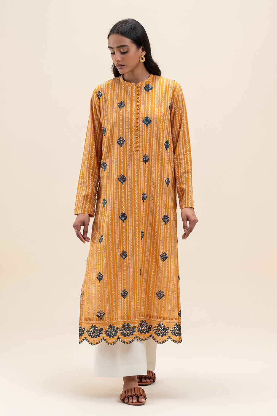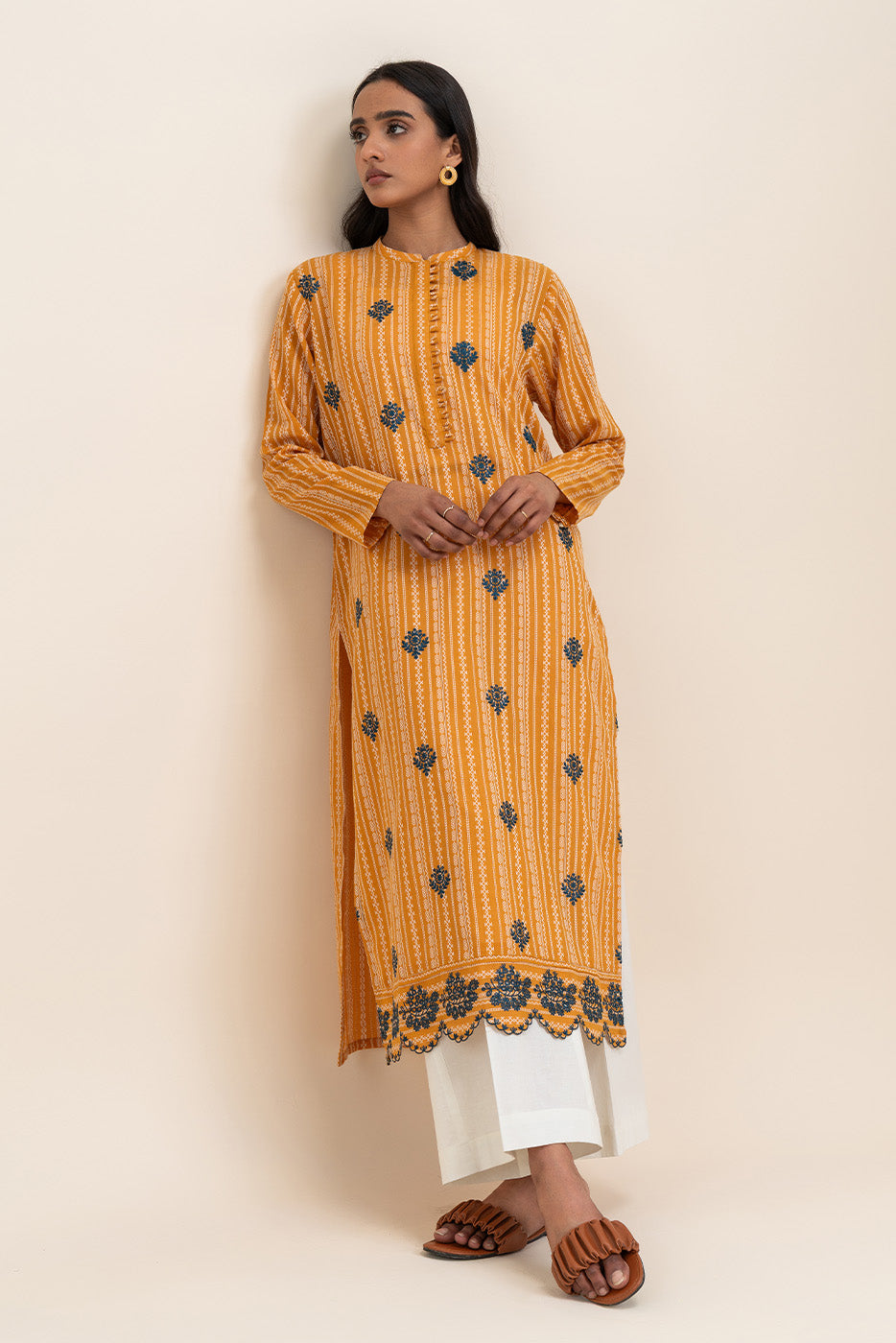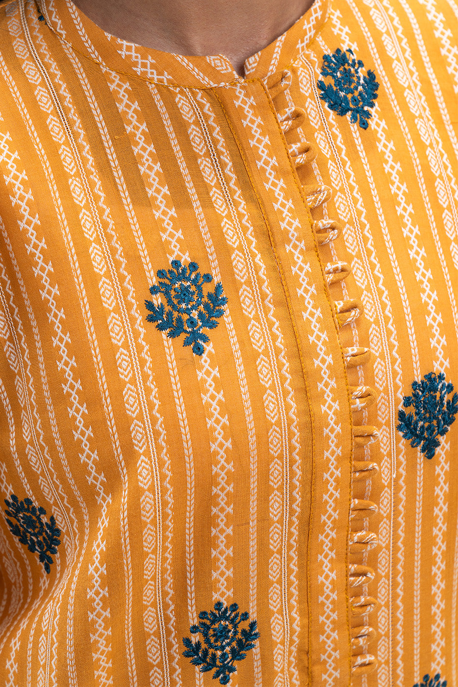 1 PIECE EMBROIDERED LENO KARRA SHIRT-MARIGOLD GRID (UNSTITCHED)