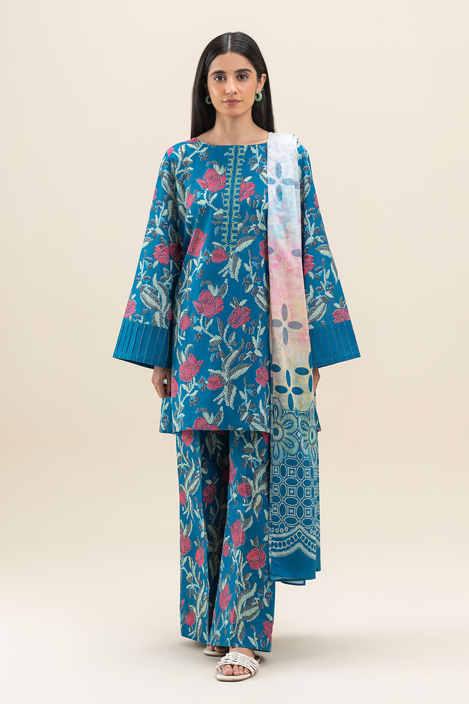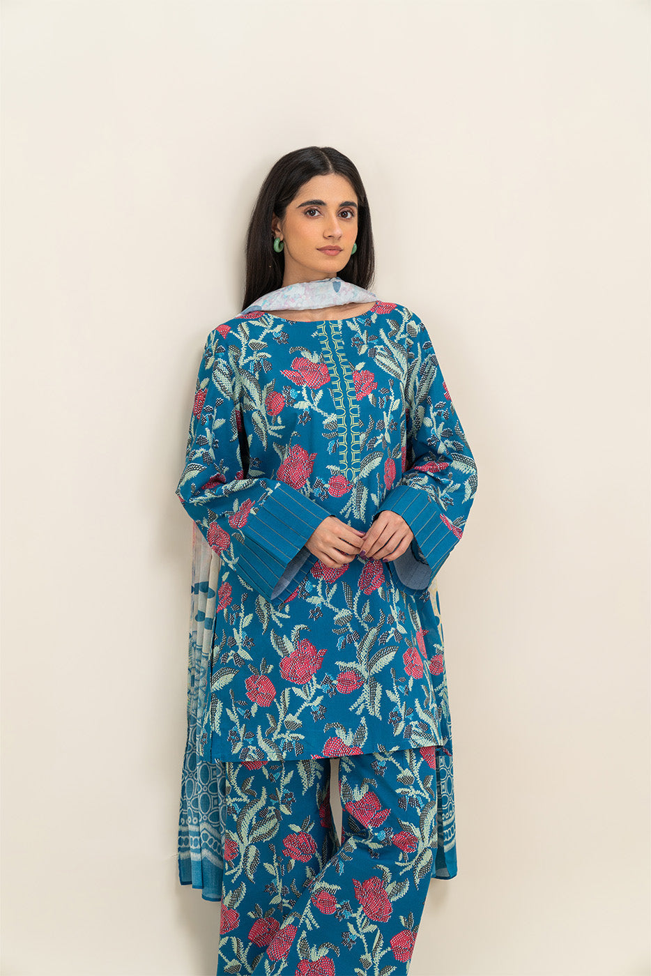 3 PIECE PRINTED LAWN SUIT-FLORAL WEAVE (UNSTITCHED)