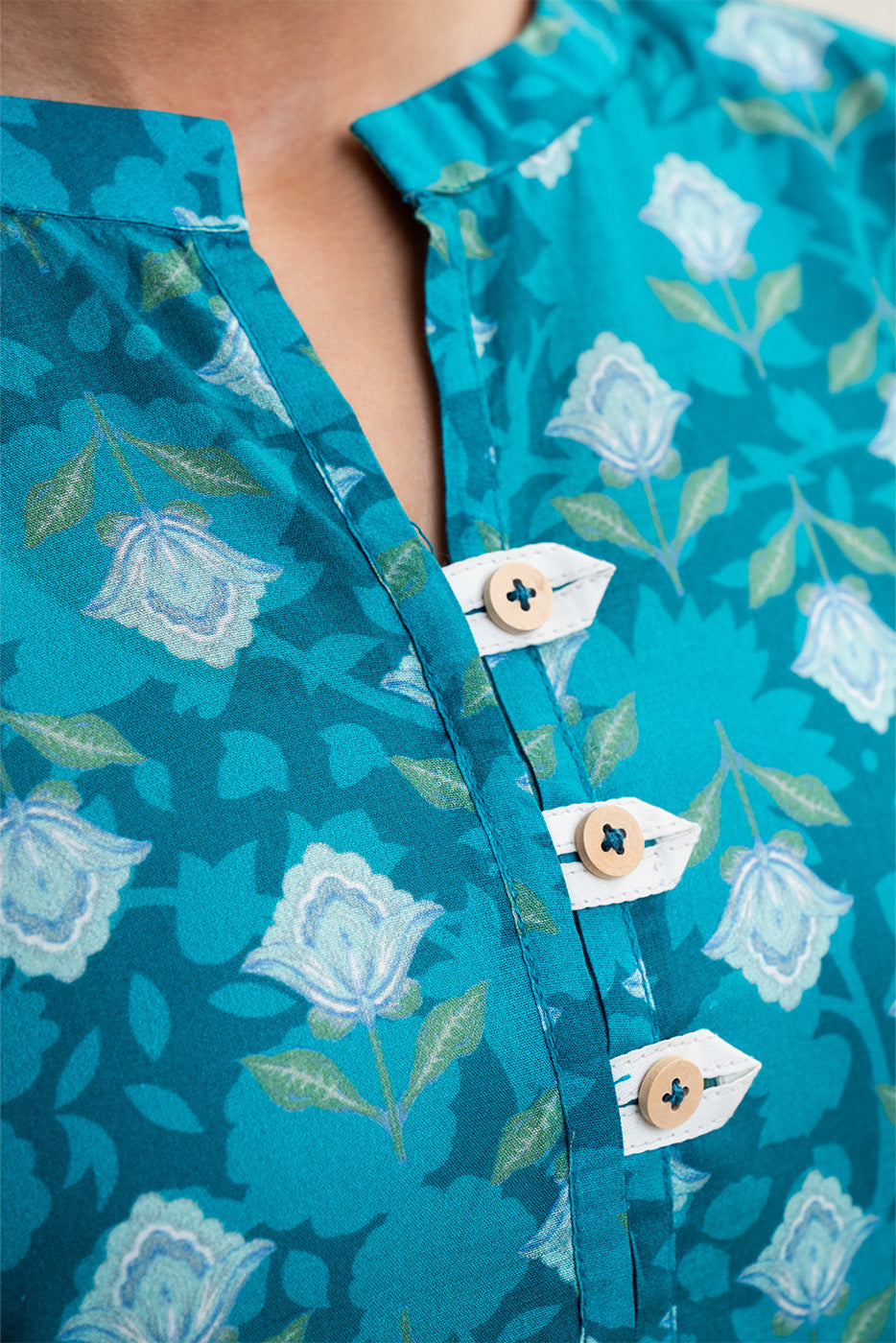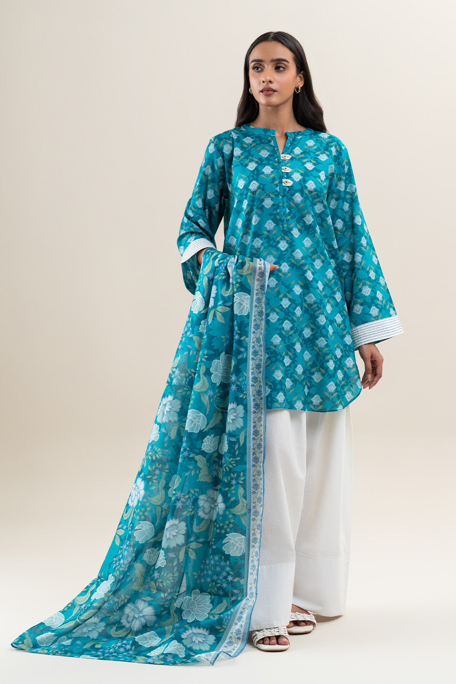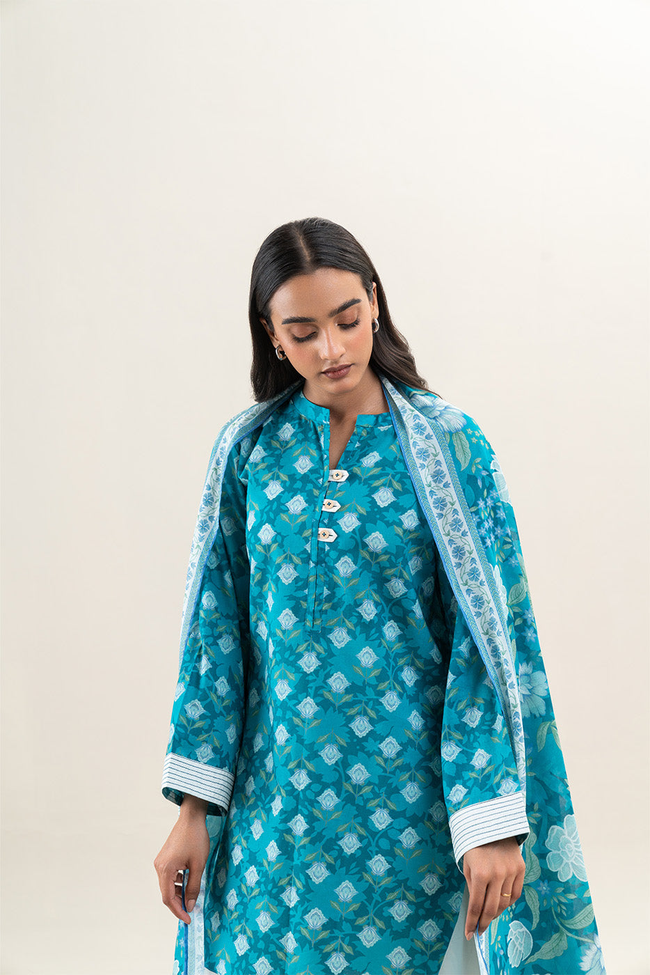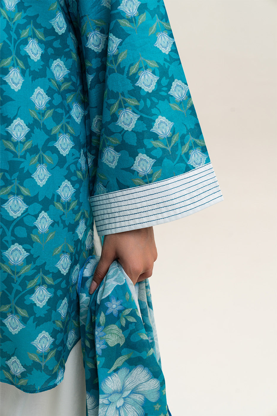 2 PIECE PRINTED LAWN SUIT-TEAL HUES (UNSTITCHED)