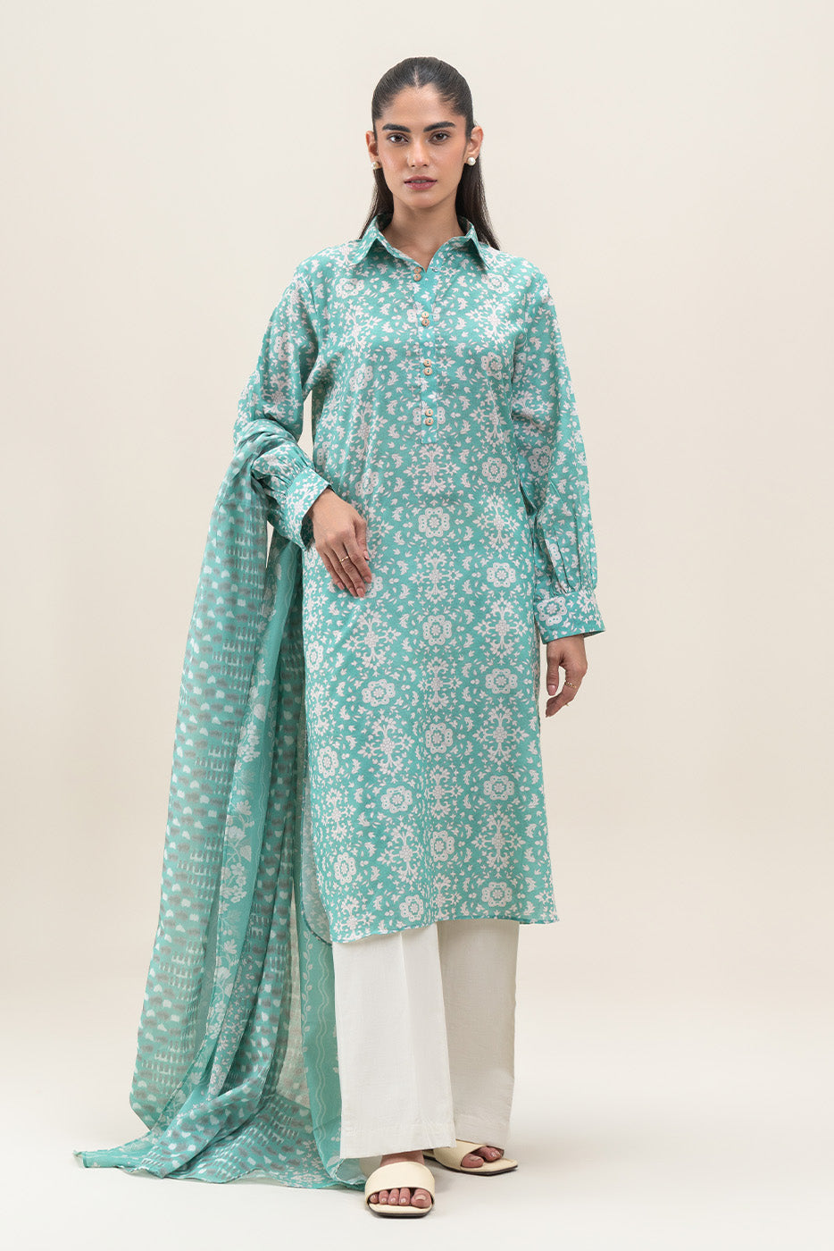 2 PIECE PRINTED LAWN LAWN SUIT-TIFFANY BLUE (UNSTITCHED)