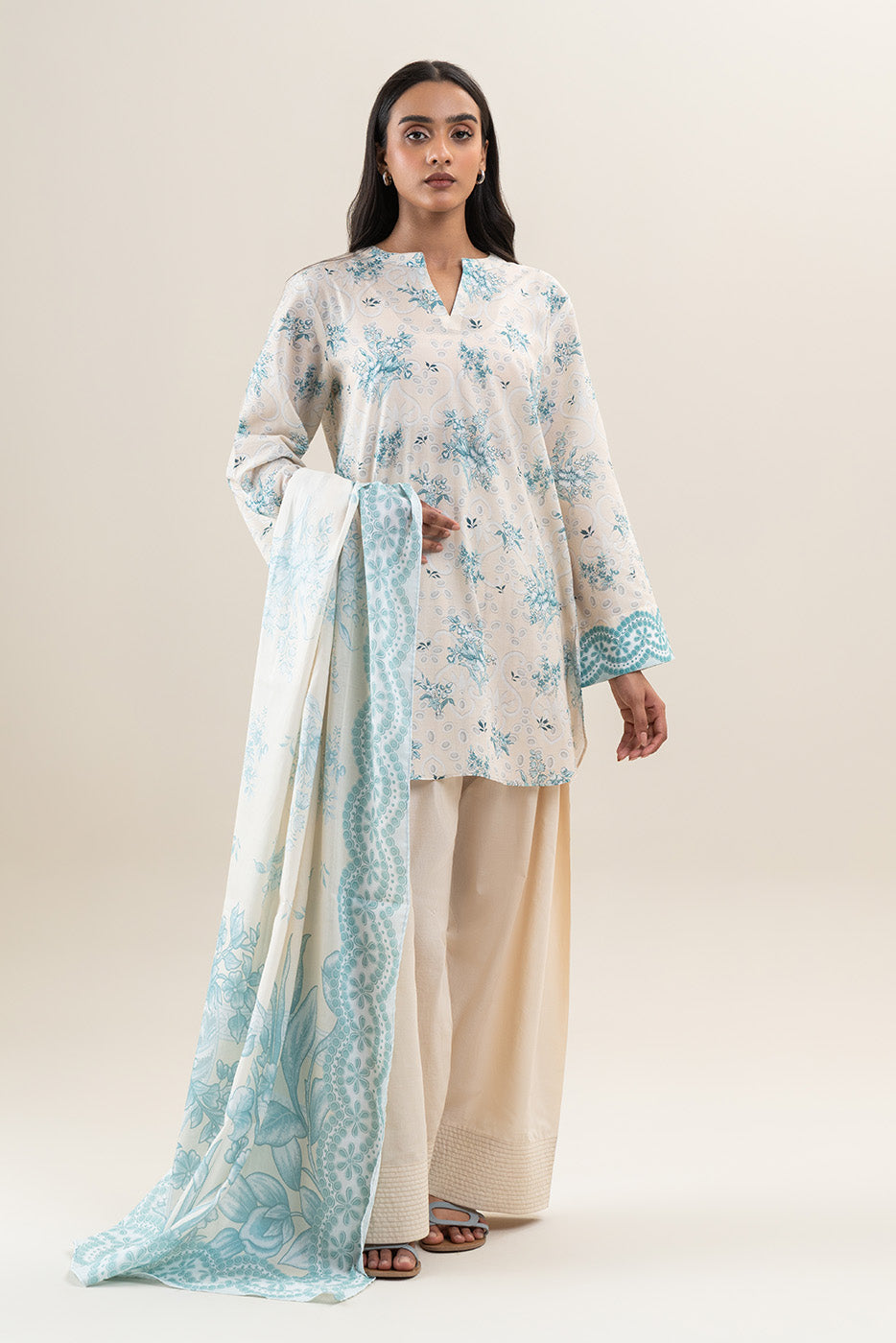 3 PIECE PRINTED LAWN SUIT-IVORY GLAM (UNSTITCHED)